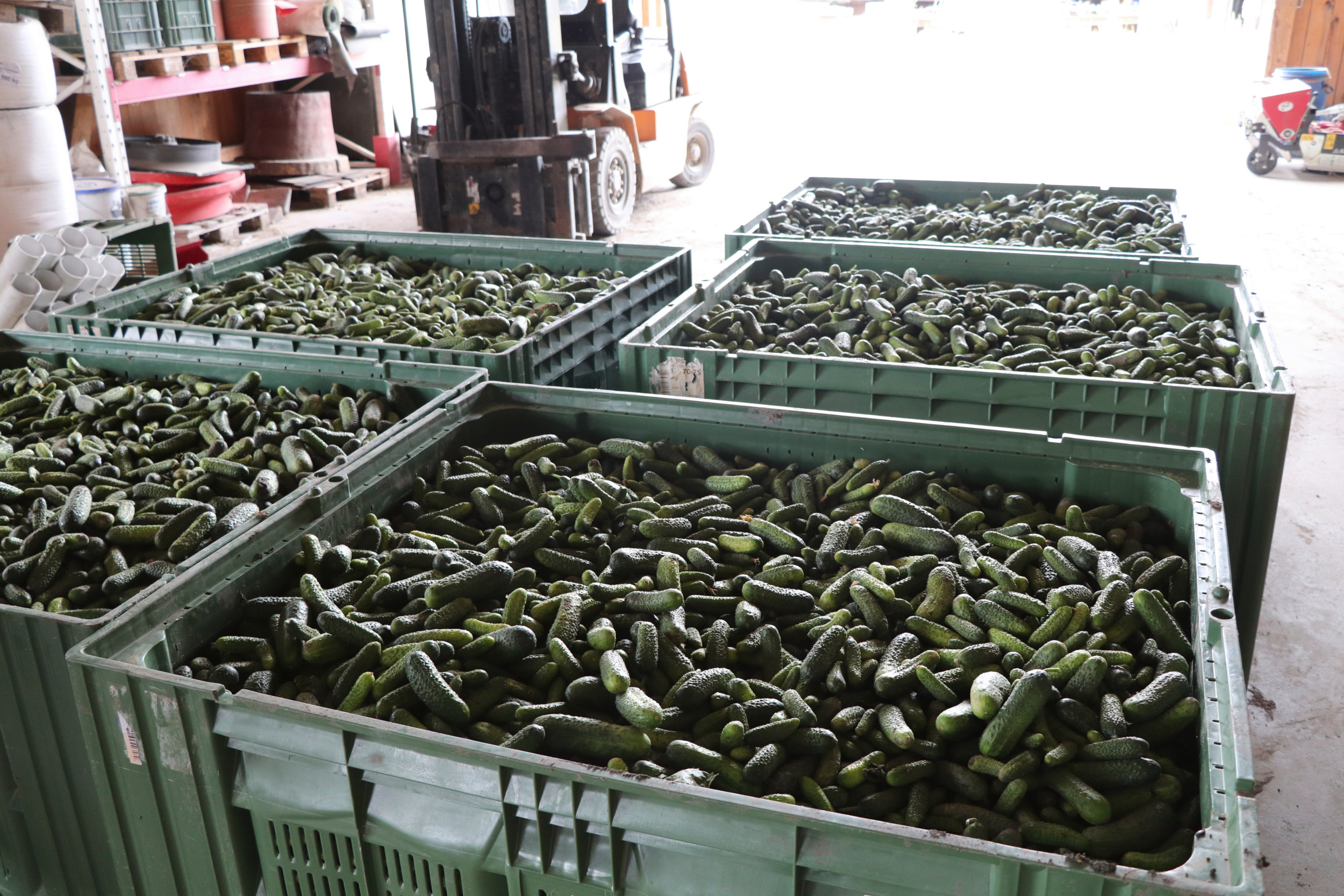 Die geernteten Gurken werden in Paloxen in einer Lagerhalle zwischengelagert. Sie werden am Folgetag abgeholt und nach Aigle gebracht.