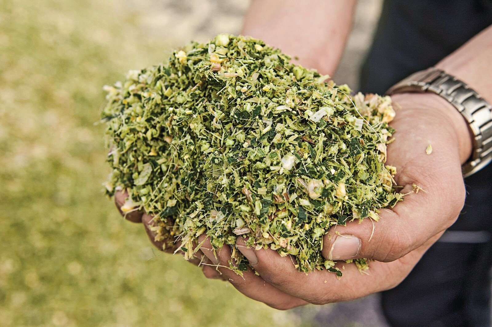 Bei der Besichtigung in der zweiten Septemberhälfte wiesen die Sorten noch unter 30 Prozent Trockensubstanz (TS) auf. Das mobile KWS-Labor Kroq vor Ort ermöglichte die Analyse: «Drei bis fünf Maisstängel werden gehäckselt, dann bestimmen wir TS- und Stärkegehalt mittels Nahinfrarot-Spektroskopie.» Die Ergebnisse zeigten, dass der Mais, bis auf einige sehr frühe Bestände, noch zu nass war. Wyss rät: «Ideal ist Silomais mit 35–40 Prozent TS. Nicht zu spät reife Sorten aussäen und Geduld haben, auch wenn die Nachbarn früh häckseln.»