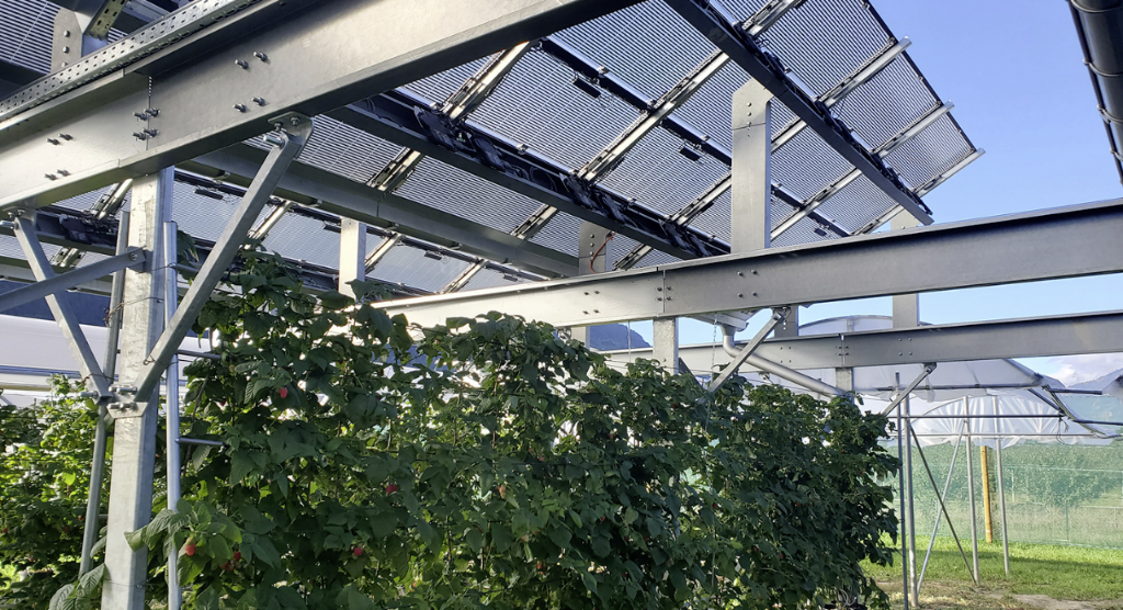 In Conthey VS startet die Forschungsanstalt Agroscope ein Agro-Photovoltaik-Pilotprojekt in Erdbeer- und Himbeerkulturen in Zusammenarbeit mit dem Schweizer Start-up Insolight und Romande Energie.