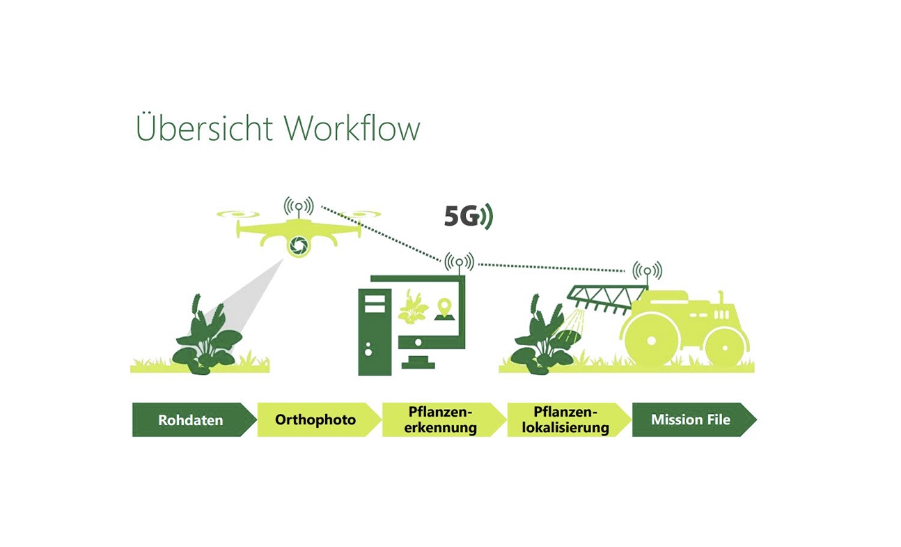 Die Erkennung der Pflanzen werde durch den Einsatz neuronaler Netze und selbstlernender Algorithmen immer genauer, erklärten die fünf Partner. Zugleich stiegen die Datenmengen immens an. Die Kombination von 5G, Big Data und Cloud-Technologie sei daher entscheidend für das Gelingen dieses Innovationsprojekts.