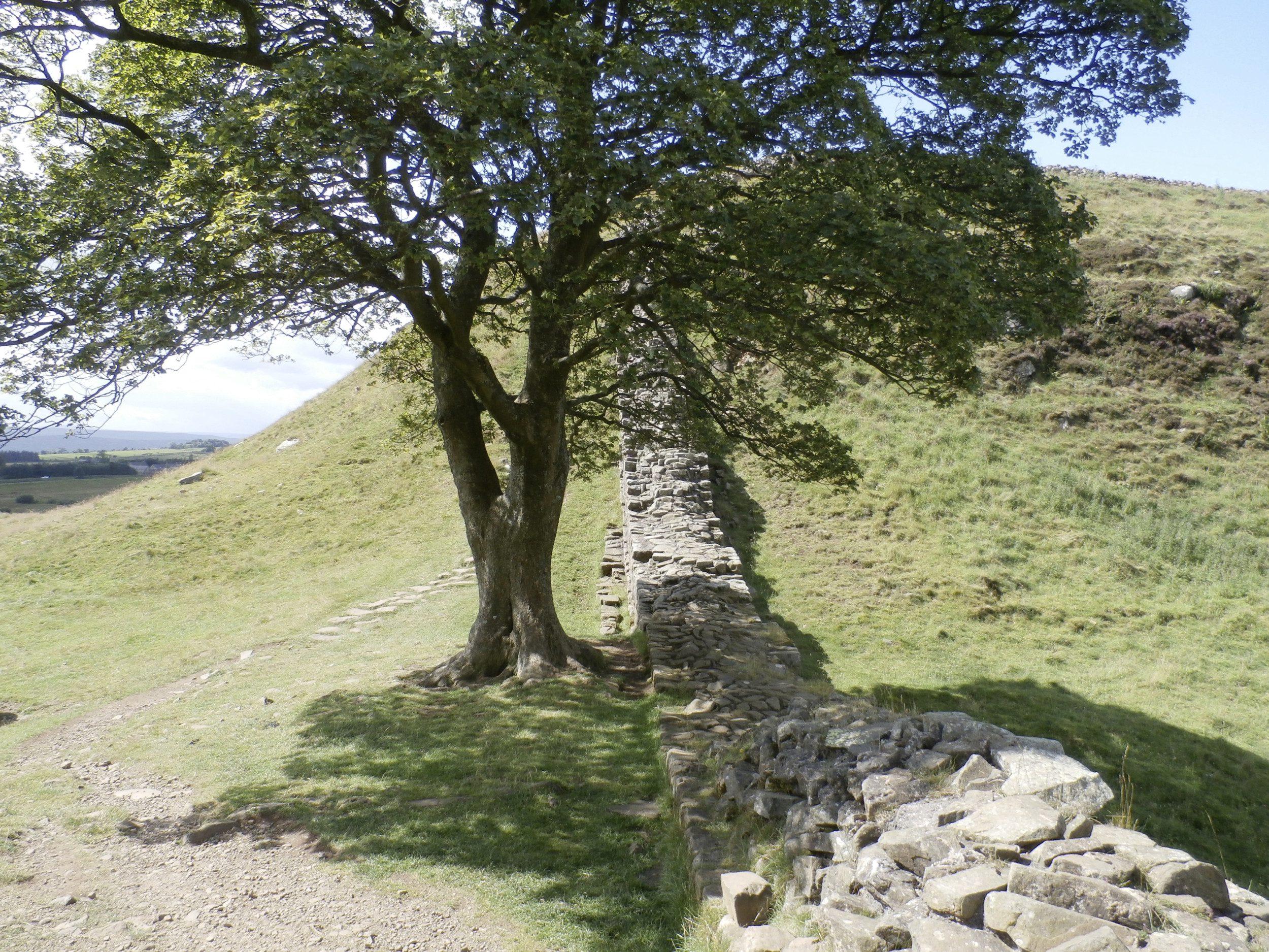 Er war im September 2023 mit einem sauberen Schnitt kurz über dem Boden abgetrennt worden. Der Stamm stürzte auf den Hadrianswall, den die Römer im zweiten Jahrhundert nach Christus zum Schutz vor Angriffen aus dem Norden sowie zur Kontrolle von Handelswegen gebaut hatten.