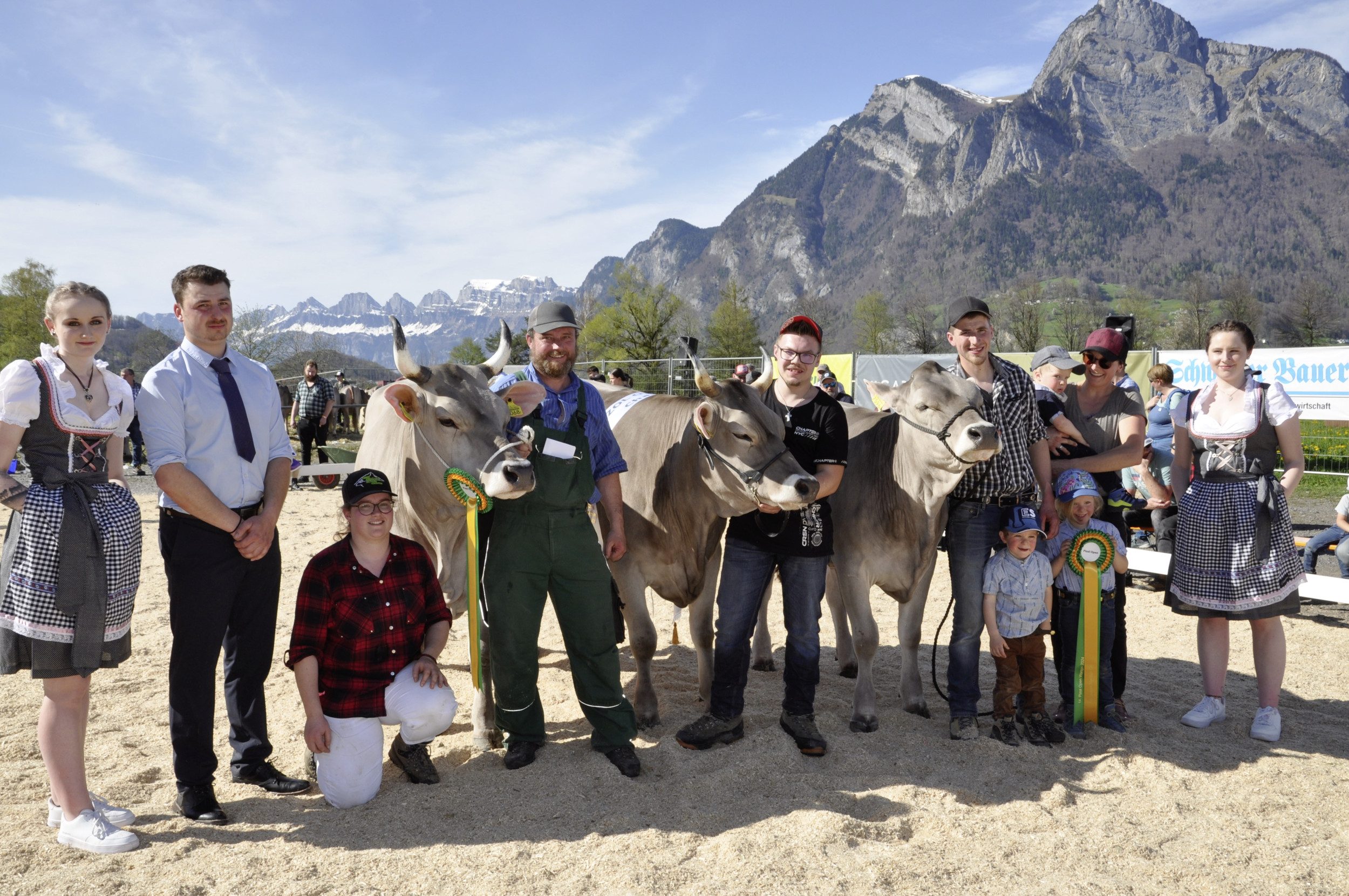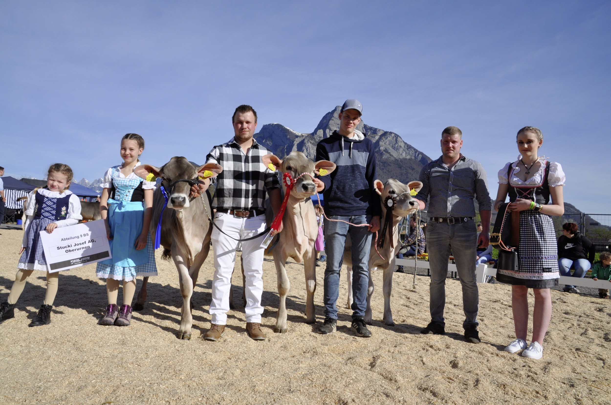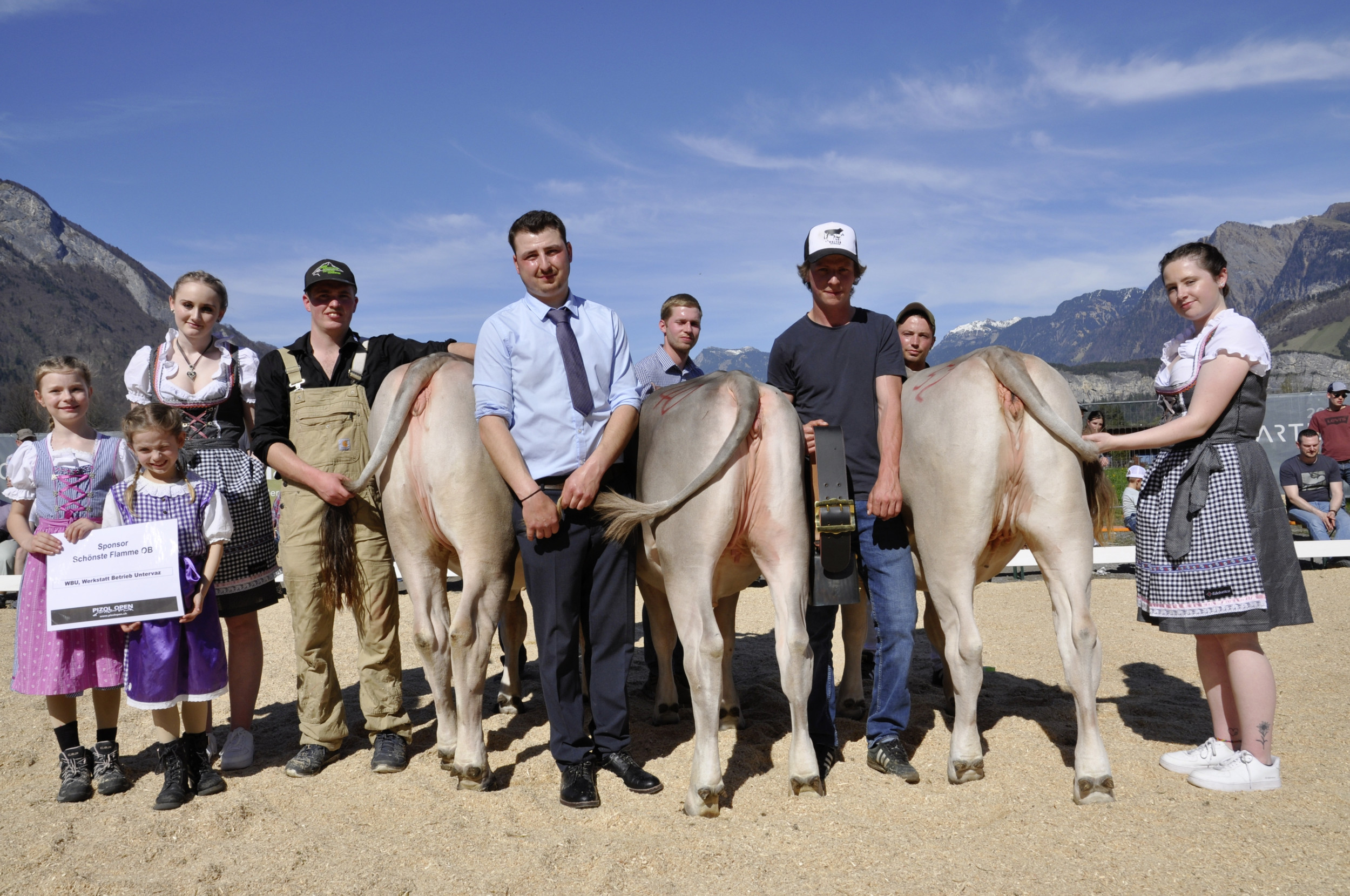 Die Vetsch’s Nesta Calvon-ET Tochter Lea wies den schönsten Flammen unter den BS-Rindern auf, sie kommt aus dem Stall von Mathias und Ueli Imhof, Spiringen. Schönster Flamme OB ging an Lustenberger OB Killy Gulietta, Vater Killy. Dieses Rind kam aus Flond nach Wangs und gehört Nils Halter.