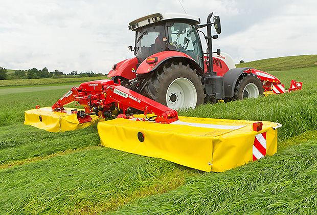 Wie das Grieskirchener Unternehmen mitteilte, verfügt die Kombination über eine Arbeitsbreite von 9,52 m. Den Leistungsbedarf gibt Pöttinger ab 130 PS an. Um immer eine optimale Ausnutzung der Mähwerksarbeitsbreite zu garantieren, sei es beim Novacat S10 möglich, die Mäheinheit an zwei verschiedenen Positionen des Auslegers zu montieren, passend jeweils für 3,0-m- oder 3,5-m-Frontmäher.