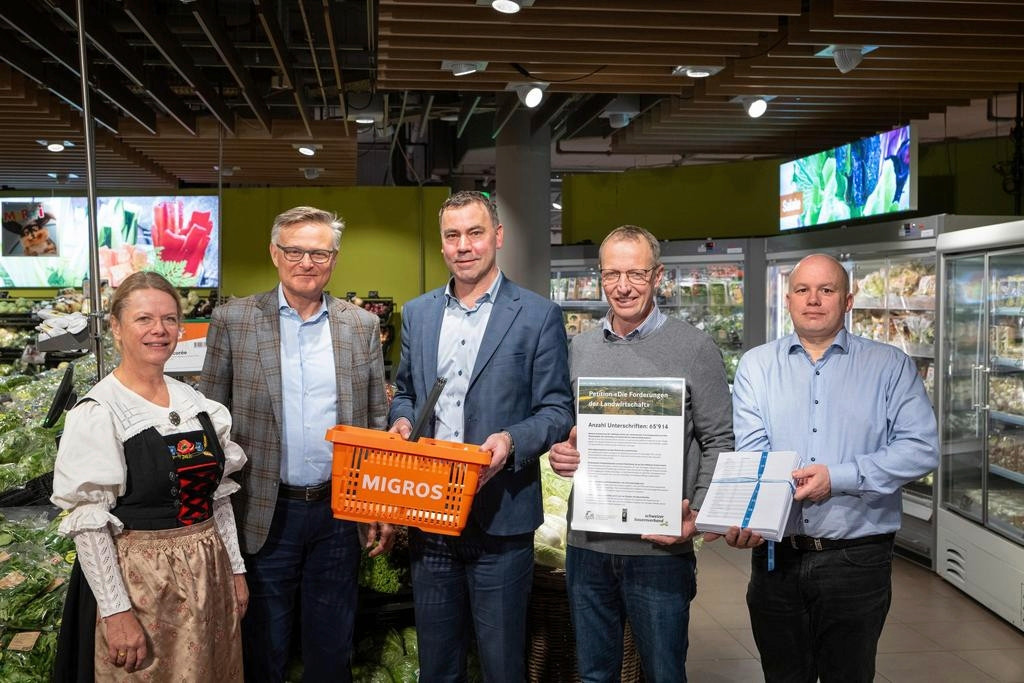 Weil diese beiden die grössten Detailhändler in der Schweiz sind. Aber wir haben die Petition auch Aldi und Lidl übergeben. Die Bauernbetriebe sind letztes Jahr durch die Teuerung auf 300 Millionen Franken Mehrkosten sitzen geblieben. Dieses Geld müssen wir auf dem Markt holen. Dort liegt der grosse Hebel. Deshalb sind die grossen Detailhändler der Schweiz wichtig.