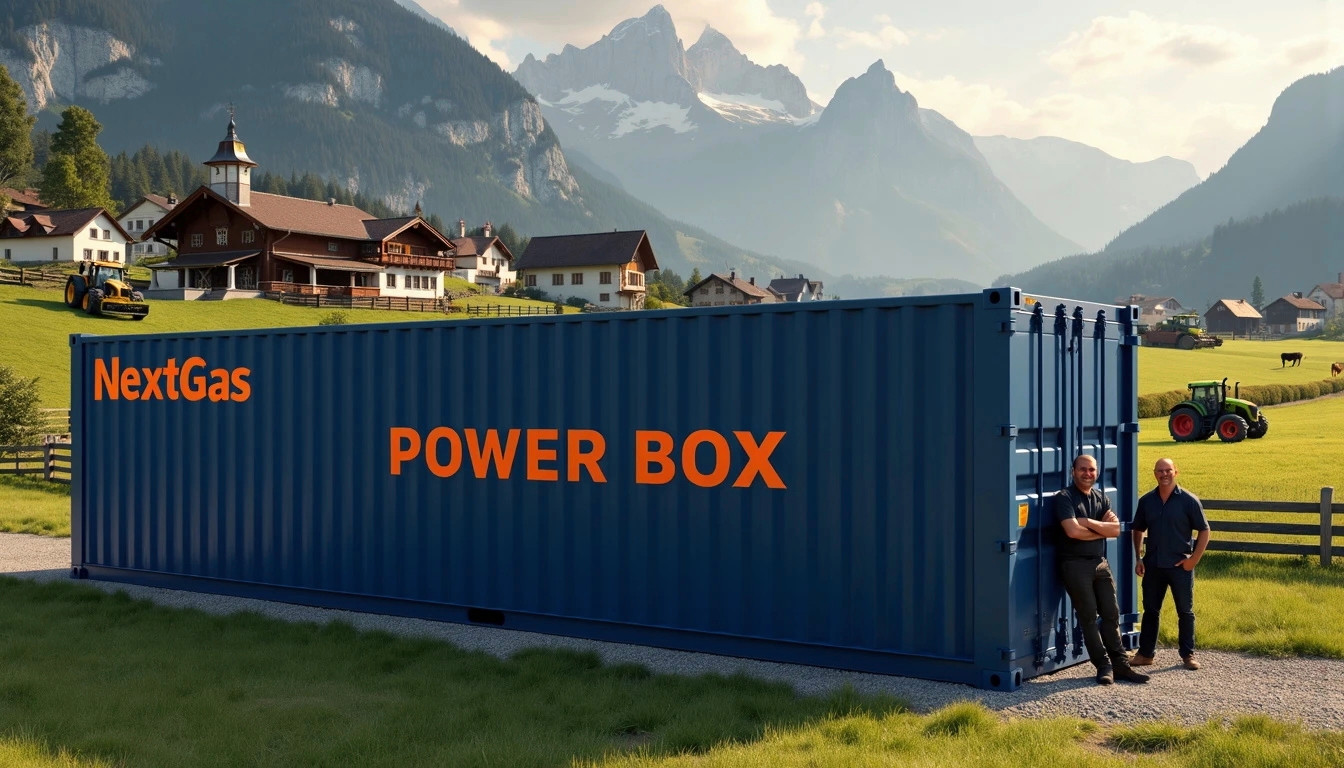 Wie das Unternehmen auf seiner Website schreibt, handelt es sich dabei um eine in einem Container untergebrachte Biogasanlage mit ein bis vier Biogasreaktoren und Pumpen zur effizienten Zu- und Abführung der Gülle. «Ein Biogasreaktor produziert etwa 80 kWh Biogas oder rund 25 kWh Strom. Pro Tag werden etwa 1,4 bis 1,8 m³ Hofdünger benötigt», erklärt Next Gas.