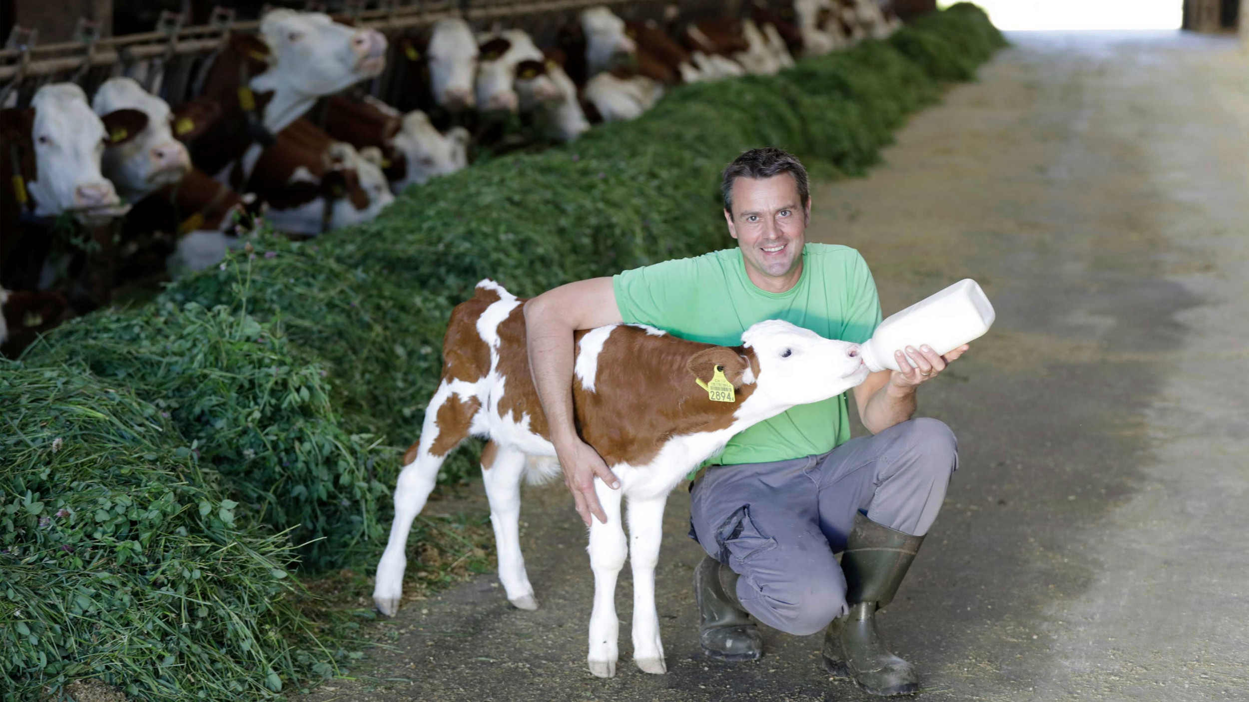 Simon Thomann aus Utzenstorf BE bewirtschaftet eine Betriebsgemeinschaft mit rund 50 Hektar Land und 44 Milchkühen. Die Milch wird an die eigene Dorfkäserei geliefert, die Emmentaler produziert. Simon ist Präsident der Genossenschaft. Seine Motivation:
