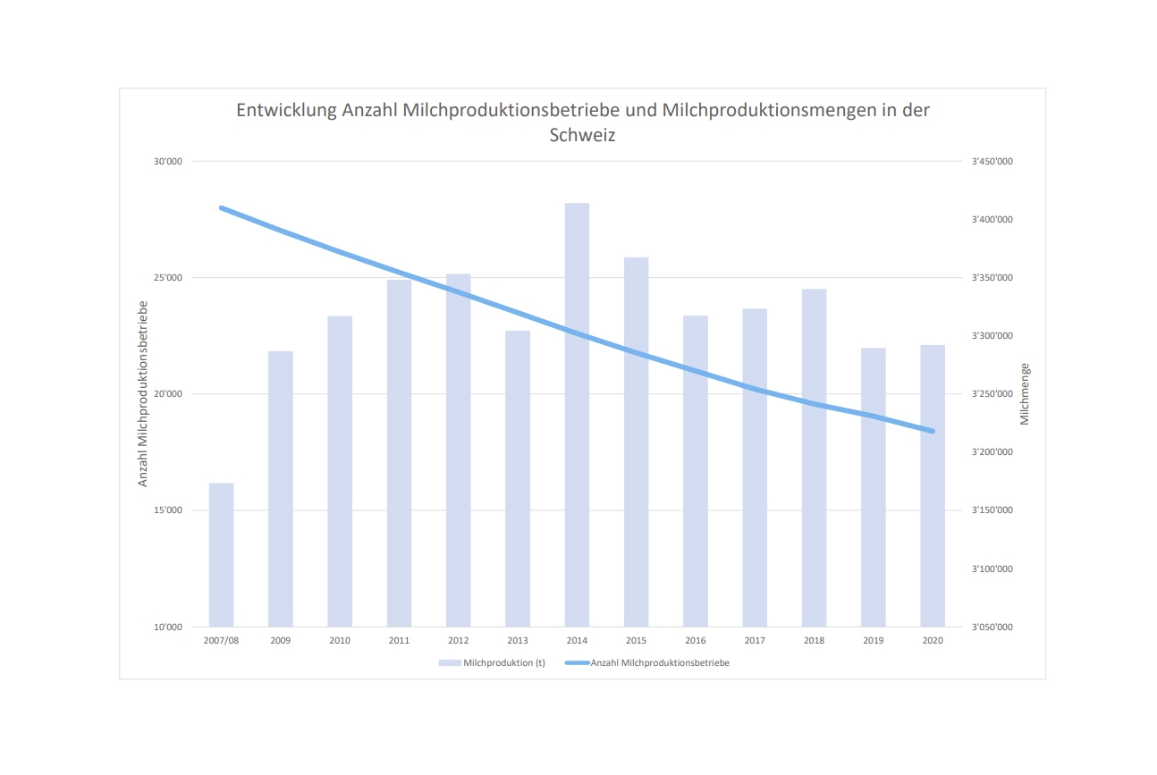 Die tiefen Preise, insbesondere für Molkereimilch, führen im Sektor seit Jahren zu Umwälzungen. Obwohl 2020 die Produzentenpreise leicht gestiegen sind, ist die Produktion für viele Betriebe nicht kostendeckend.