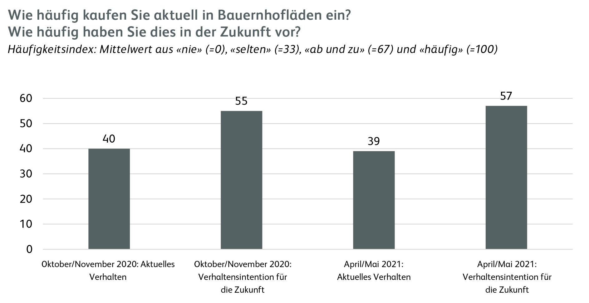 «Während der Pandemie arbeiten viele Menschen im Homeoffice, dadurch haben sie mehr Zeit, auch einmal auf einem Bauernhof oder auf dem Wochenmarkt einzukaufen», sagt Marcel Zbinden, Co-Studienautor und Wirtschaftspsychologe an der Hochschule Luzern. Um regionale Lebensmittel einzukaufen, müsse man aber nicht zwingend direkt zum Produzenten, solche Produkte gibt es auch im Supermarkt. Zbinden: «Die Bauernhofläden müssen sich wohl darauf einstellen, dass die Kundenzahlen wieder etwas zurückgehen werden, auch wenn die Vorsätze der Konsumentinnen und Konsumenten etwas anderes erahnen lassen.»