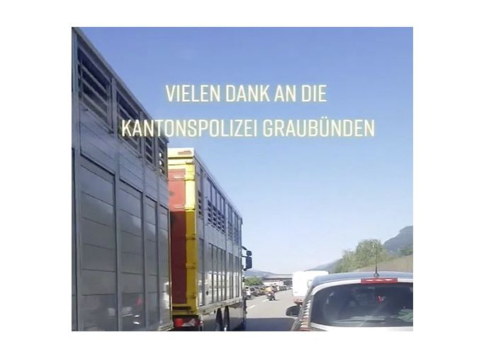 Kritisch wird es, wenn Tiertransporter in der Blechkolonne feststecken. So geschehen am vergangenen Wochenende auf der A13 im Kanton Graubünden. Chauffeure alarmierten gegen Mittag die Polizei, weil sie bei Chur im Stau blockiert waren. Um Schlimmeres zu verhindern, griff die Kantonspolizei ein.
