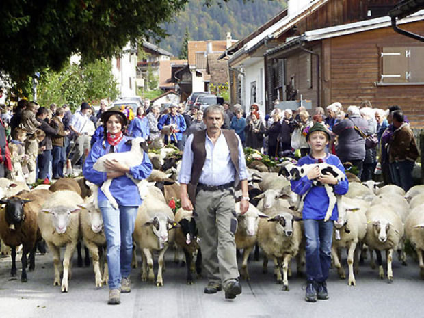 Angeführt wurde der Abzug von der Familie Koni Adank mit einer Schafherde. Die Mutterschafe waren bekränzt, und die Lämmer, die erst vor ein paar Tagen auf die Welt gekommen waren, wurden von Ramona und Klein-Koni getragen. Die Geissen durften bei diesem Abzug ebenso wenig fehlen wie die zwei Pferdegespanne mit dem Käse.