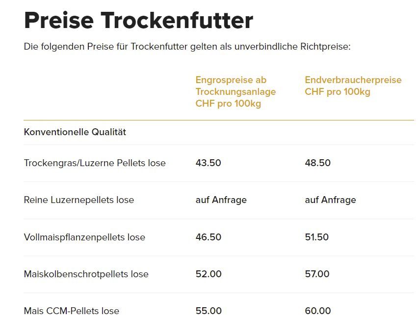 Die Richtpreise für getrocknete Maisprodukte werden angehoben. Der Preis für Graswürfel wurde bereits im Frühsommer nach oben angepasst.