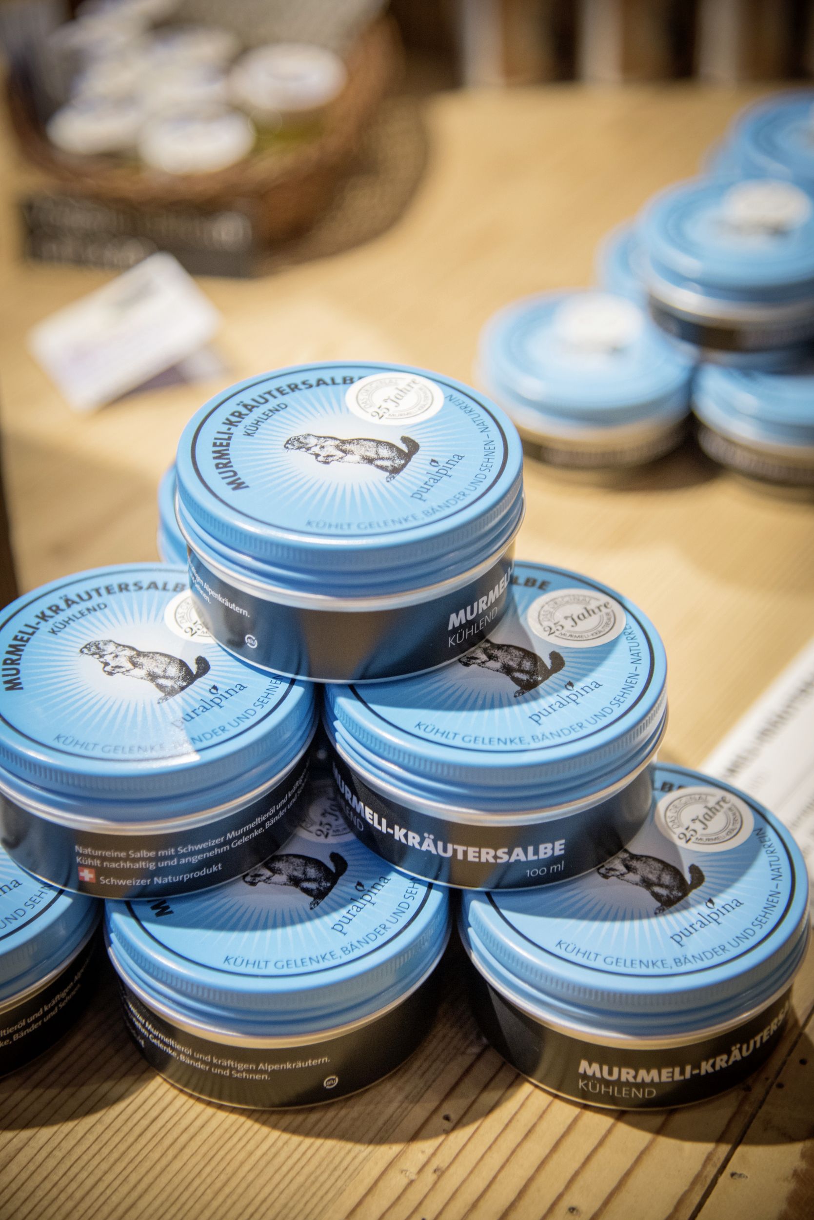 Angefangen hat die Erfolgsgeschichte von Puralpina vor 30 Jahren, in einem Kuhstall in Frutigen: «1992 habe ich zu Hause die erste Murmeli-Kräutersalbe hergestellt», erzählt Andreas Schmid, Vater von Reto und Silvan, den heutigen Chefs. Die Rohstoffe stammen aus der Region: Berg-Hauswurz statt Aloe Vera, Tannenharz statt Palmöl oder Bienenwachs statt Kokosfett – alles Rohstoffe aus dem Berner Oberland. Auch das Murmeliöl wird als Nebenprodukt aus Schweizer Jagd gewonnen. «Als Jäger wollte ich möglichst alles vom Tier aus der Jagd verwerten», sagt Andreas Schmid. Das für die Herstellung der Murmeli-Kräutersalbe verwendete Murmeltieröl und die dazu benötigten Wildfette stammen nach wie vor ausnahmslos aus Schweizer Jagd.