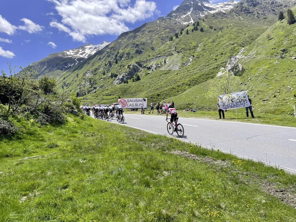 Der Ecuadorianer dürfte sich aber nicht auf die Plakate geachtet haben, die neben der Rennstrecke gut sichtbar platziert wurden. Der Bündner Verein zum Schutz der ländlichen Lebensräume vor Grossraubtieren, der Verein Schweiz zum Schutz der ländlichen Lebensräume vor Grossraubtieren und das Komitee Pro alpine Kulturlandschaft machten mit dem Schriftzug «Save the Alps - Retten wir die Alpen - Salvain las Alps - Salviamo le Alpi» auf ihr Anliegen aufmerksam.