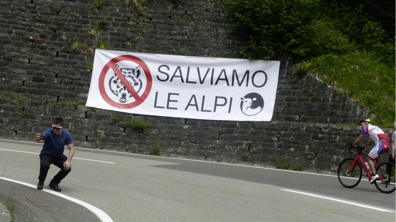 «Der Aktion richtet sich gegen die unkontrollierte Ausbreitung der streng geschützten Grossraubtiere, insbesondere der Wölfe im gesamten Alpenbogen», heisst es in der Mitteilung der drei Organisationen. Dies Ausbreitung habe verheerende Folgen für die Alpwirtschaft, die bäuerliche Kultur, das Landleben und den Tourismus. Nicht nur in der Schweiz, sondern bereits am Giro d’Italia wurde in einer länderübergreifenden Aktion auf die Grossraubtiere aufmerksam gemacht.