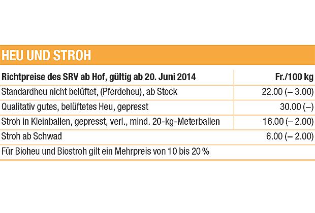 Die aktuellen klimatischen Verhältnisse garantieren dem Schweizerischen Raufutter-Verband (SRV) gute Wüchsigkeit von Heu und Stroh. An seiner Sommersitzung in Zürich legte er die Richtpreise fest.