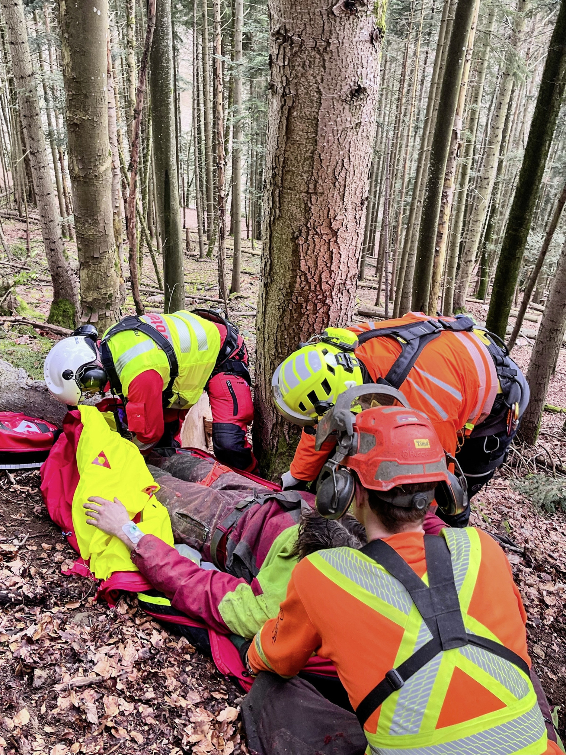 Forstunfälle haben häufig herausfordernde Rettungseinsätze für die Rega zur Folge, wie der Rettungsdienst in der Mitteilung weiter ausführt. Der schwierige Zugang, die Bäume und das unwegsame Gelände erfordern eine gute Koordination mit den Einsatzkräften am Boden und eine hohe Präzision bei der Arbeit mit der Rettungswinde. Daher werden solche Einsätze regelmässig mit Partnern trainiert, zum Beispiel mit Forstarbeitenden und SAC-Bergrettern.