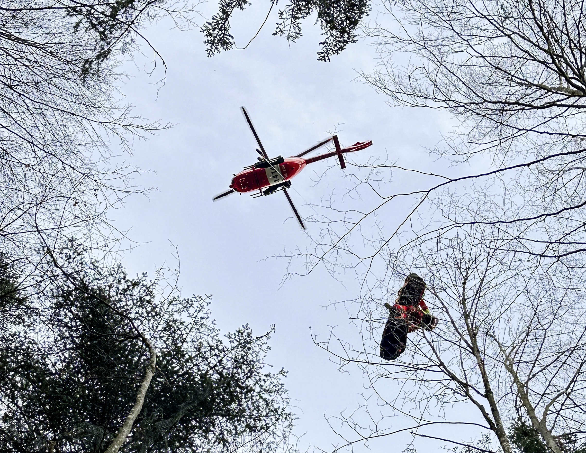 Der verletzte Förster musste per Helikopter mit einer Rettungswinde aus dem unwegsamen Wald gerettet werden.