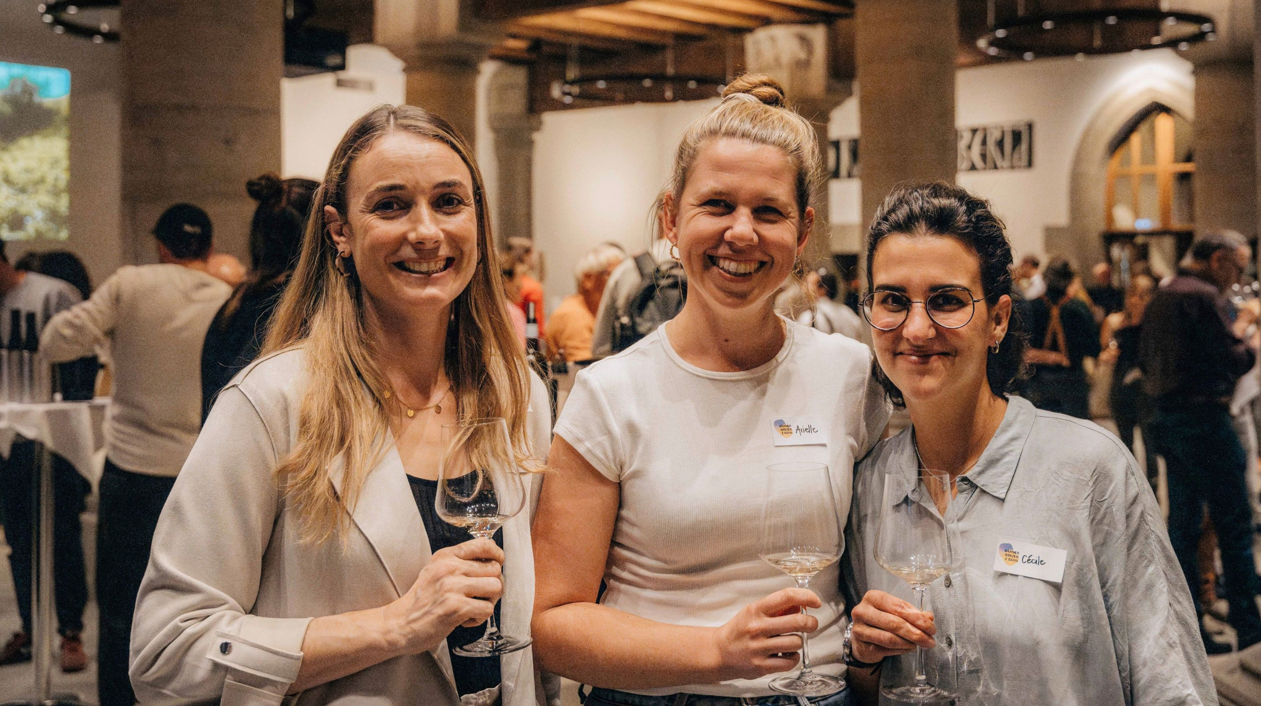Die Winzerinnen Rahel Bösiger, Arielle Andrey und Cécile Luterbacher vom OK (v.l.) laden zur 5. Ausgabe von «Bärner Winzer z Bärn» ein. Cécile Luterbacher arbeitet als Redaktorin beim «Schweizer Bauer».