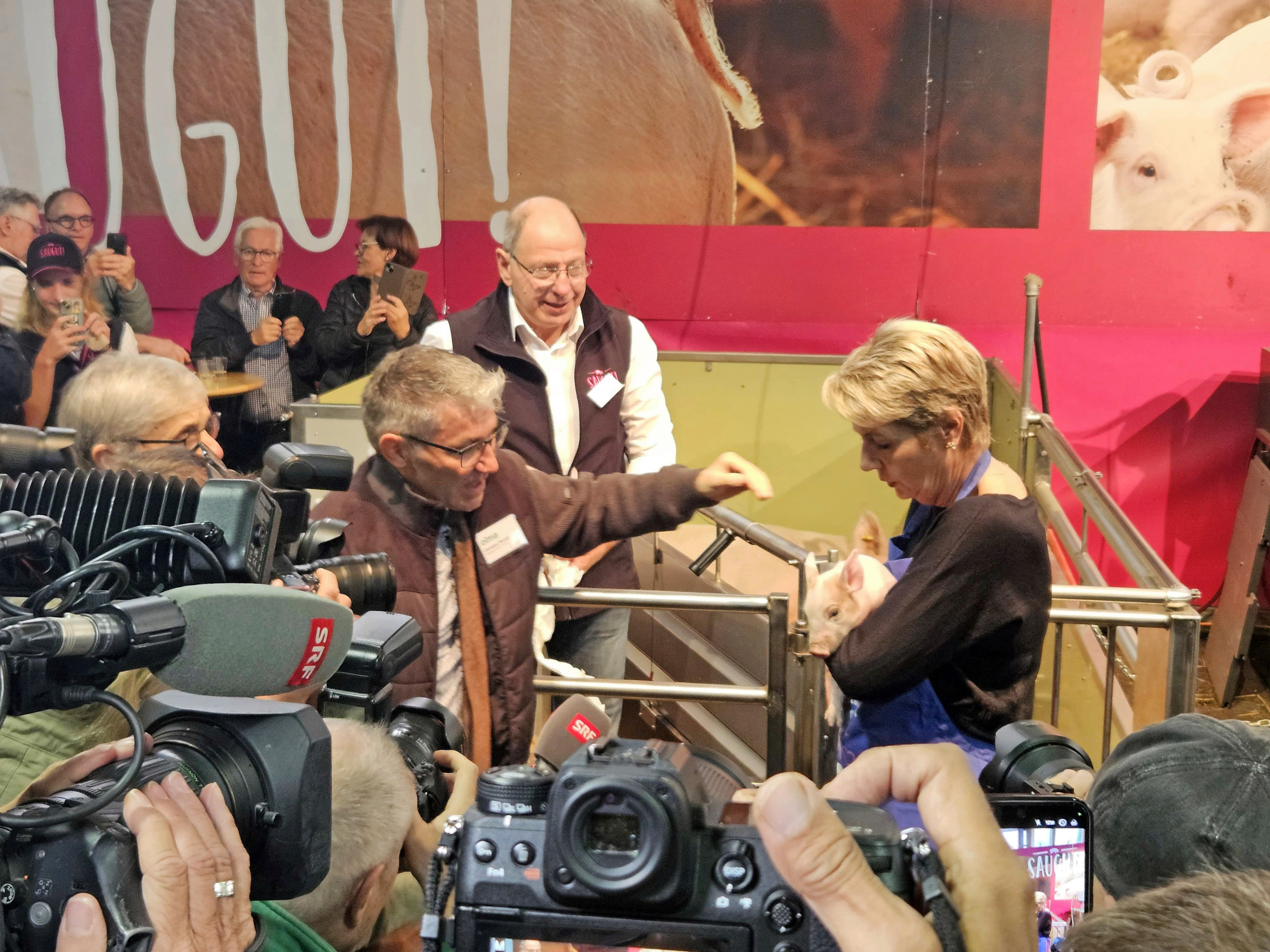 Das diesjährige Bundesratssäuli ist nach der St. Galler Sängerin und Moderatorin Paola Felix benannt, die am 5. Oktober 75 Jahre alt wurde. Am gleichen Tag kam Ferkel Paola zur Welt. «Zufälligerweise hat auch mein Mann an diesem Tag Geburtstag», sagte Keller-Sutter. Berührungsängste zeigte sie dabei nicht, im Gegenteil. Sie herzte Paola innig.