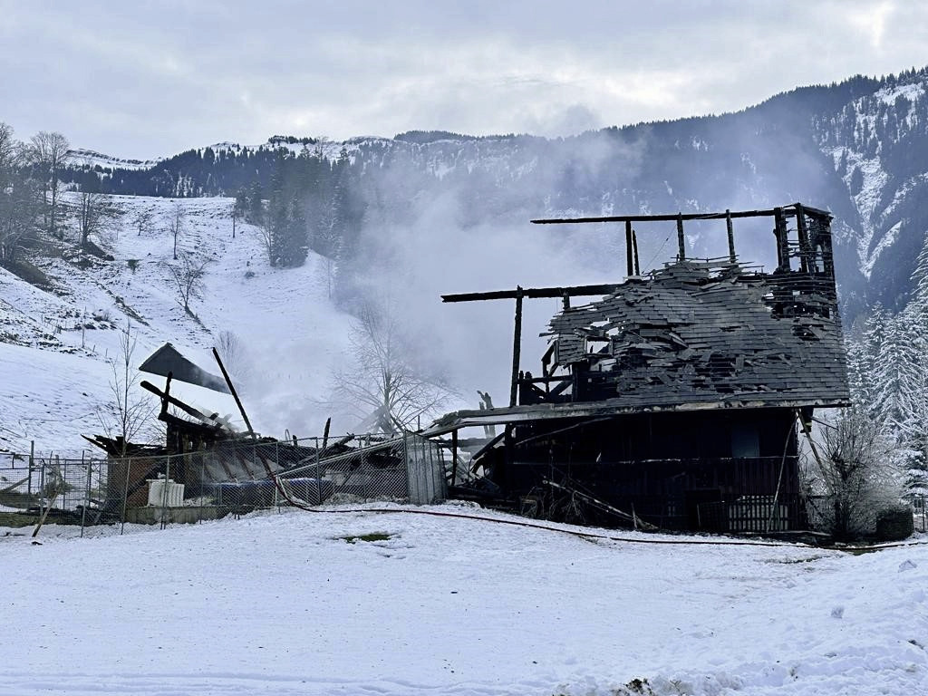 Das Feuer bei dem das Bauernhaus vollständig abbrannte, war der Polizei am Montag um 01.20 Uhr gemeldet worden. Drei Erwachsene wurden von den Einsatzkräften vor dem brennenden Haus vorgefunden, zwei davon wurden ins Spital gebracht. Die dritte Person war leicht verletzt und wurde entsprechend betreut.