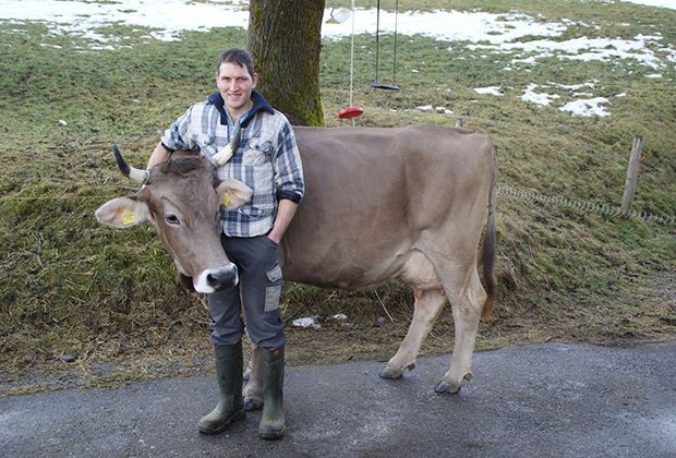 Die durchschnittliche Zellzahl, ein Mass für die Eutergesundheit, lag im letzten Milchjahr bei 47«000, ein sehr gutes Ergebnis. Raschle sieht sich auf gutem Weg bei der Zucht einer langlebigen, robusten Kuh. Er möchte die Zucht auf hohe Milchleistung jedoch nicht schlecht machen. «Es ist mein Weg. Der Aufwand wäre bei mir sonst viel grösser», hält er fest. Wer auf hohe Milchleistung setzt, muss selbst Ackerbau betreiben oder Kraftfutter zukaufen. Der Bergbauer möchte seinen Bergbetrieb jedoch natur- und standortgemäss bewirtschaften. Seit 1. Januar befindet sich dieser in der Umstellungsphase zur biologischen Landwirtschaft, zu der die OB Kuh gut passt.