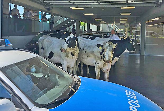 Die Fahrzeuge blieben laut Garagen-Chef Christian Rittershaus unbeschadet. «Eine Kuh ist gegen ein Auto gelaufen. Das konnten wir wegpolieren», sagte er zu 24auto.de. Die aufgeregten Rinder verrichten in der Halle ihre Notdurft. Der Bauer bot an, die Haufen zu beseitigen, doch das erledigten die Mitarbeiter des Autohauses selbst. Der Landwirt bedankte sich mit Glace für alle Angestellten.