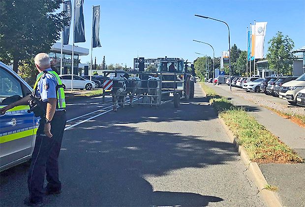 Am Mittwochnachmittag nahmen vier Rinder in Velbert (D) Reissaus. Die Tiere konnten vor der Polizei flüchten. In einem Autohaus wurden sie schliesslich «dingfest» gemacht.