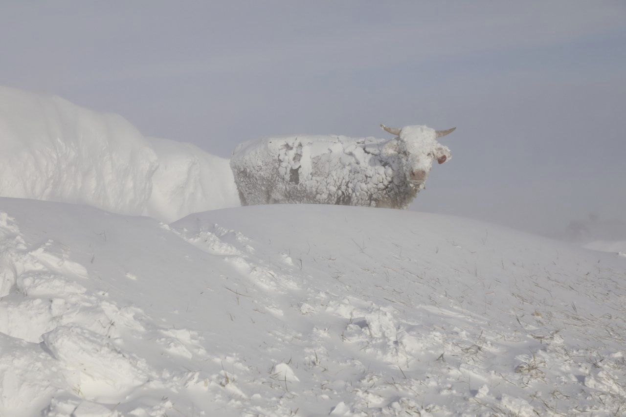 Eindrückliche Bilder und Videos hat die Farmerfamilie Reinhold auf den Sozialen Medien und ihrer Website veröffentlicht. Sie zeigen die Hereford-Herde der Familie. Der eisige Wind und der Schnee haben bei den Rindern Spuren hinterlassen. Schnee haftet am Fell und an den Hörnern. Für die Tiere ist das garstige Wetter kein Problem.