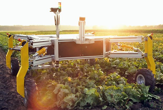 Wissenschaftler des Instituts für Mobile autonome Systeme und kognitive Robotik (MASKOR) an der Fachhochschule Aachen haben einen fahrerlosen Feldroboter namens „ETAROB“ entwickelt, der Böden auflockern und Unkraut mit Stromstössen bekämpfen kann.