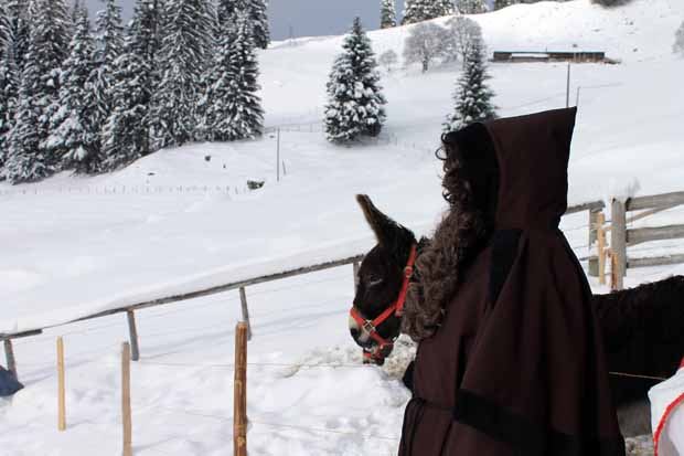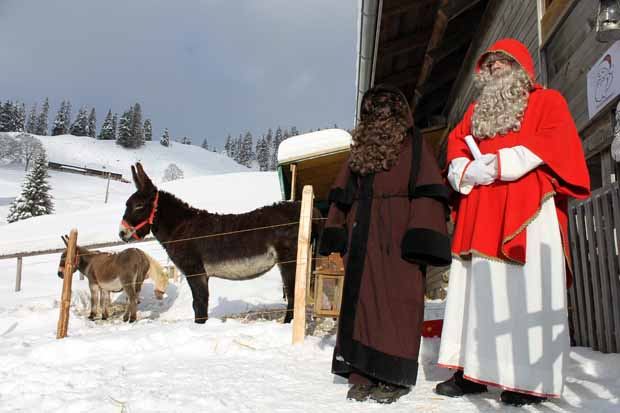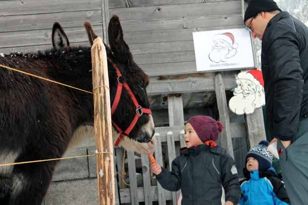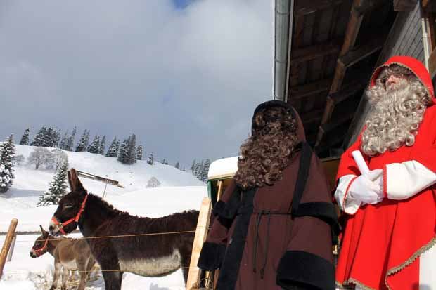 In der Küche brennt ein Holzherd und im Nebenzimmer werden die vielen mitgebrachten Zeichnungen der Kinder gesammelt, im grossen Gästebuch dürfen Gross und Klein ihre Grüsse hinterlassen. Draussen herrscht unterdessen emsiges Treiben, Esel füttern ist angesagt, doch bevor die drei Eselchen aus allen Nähten platzen, läutet ein Schmutzli das goldene Glöckchen. Endlich ist es soweit, der Santiklous erzählt seine Geschichten.