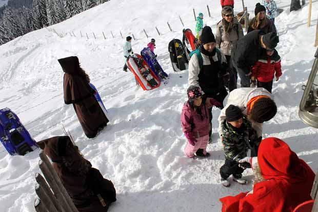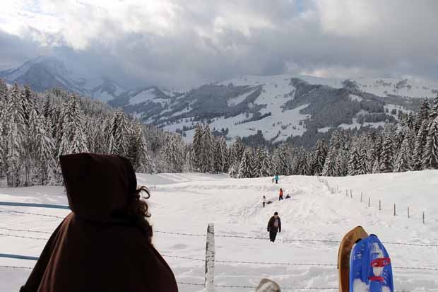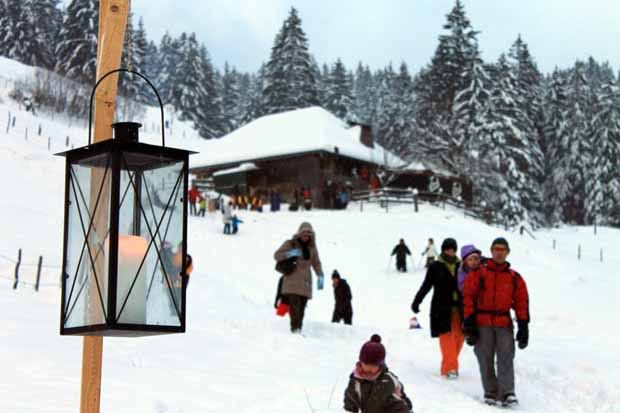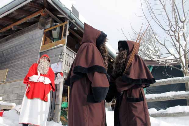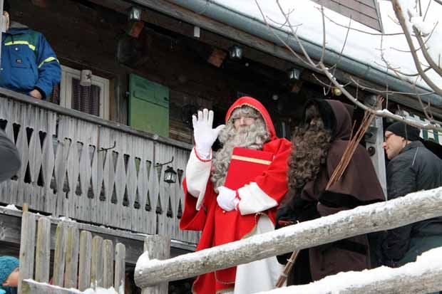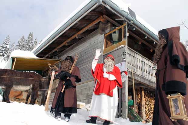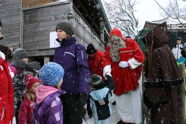 Der schmale Pfad schlängelt sich den Berg empor, im Hintergrund der zugefrorene Schwarzsee. Die grossen Tannen tragen weisse Häupter und die weissen Flocken rieseln immer noch vom Himmel. Laternen säumen den Wegrand und das warme Kerzenlicht flackert lustig vor sich hin. Mit roten Wangen und erwartungsvoll glitzernden Augen treffen die kleinen Gäste mit ihren Begleitern, nach einer halbstündigen Wanderung durch die verschneite Berglandschaft, am Ziel ein. Sie werden bereits erwartet, der grosse, ehrfürchtige Santiklous in seinem leuchtend roten Umhang winkt ihnen fröhlich entgegen. Und auch die zwei Schmutzlis sind nicht weit.