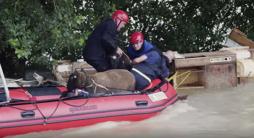 In der Schweiz giesst es derzeit wie aus Kübeln. Die Fliessgewässer führen Hochwasser, so auch die Saane. Im Westen von Bern konnten die Rettungskräfte am Mittwoch in Not geratene Schafe aus ihrer misslichen Lage befreien. -> Mit Video