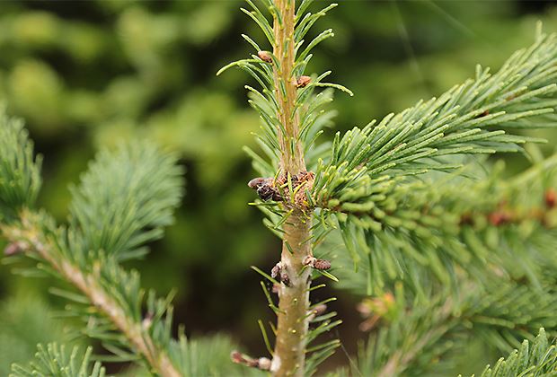 Während der ersten 2 Jahre wachsen die Bäume kaum, dann sehr schnell. Ohne einzugreifen würden die Abstände zwischen den einzelnen Astkränzen zu gross. In der Schweiz werden im Frühling mit Klemmen die Saftbahnen manuell abgeklemmt. Dadurch könne der Trieb um rund 30 Prozent eingekürzt werden, erklärt Häberli. Hier liegt ein grosser Unterschied zum Ausland, wo chemische Wachstumsregler zum Einsatz kommen.