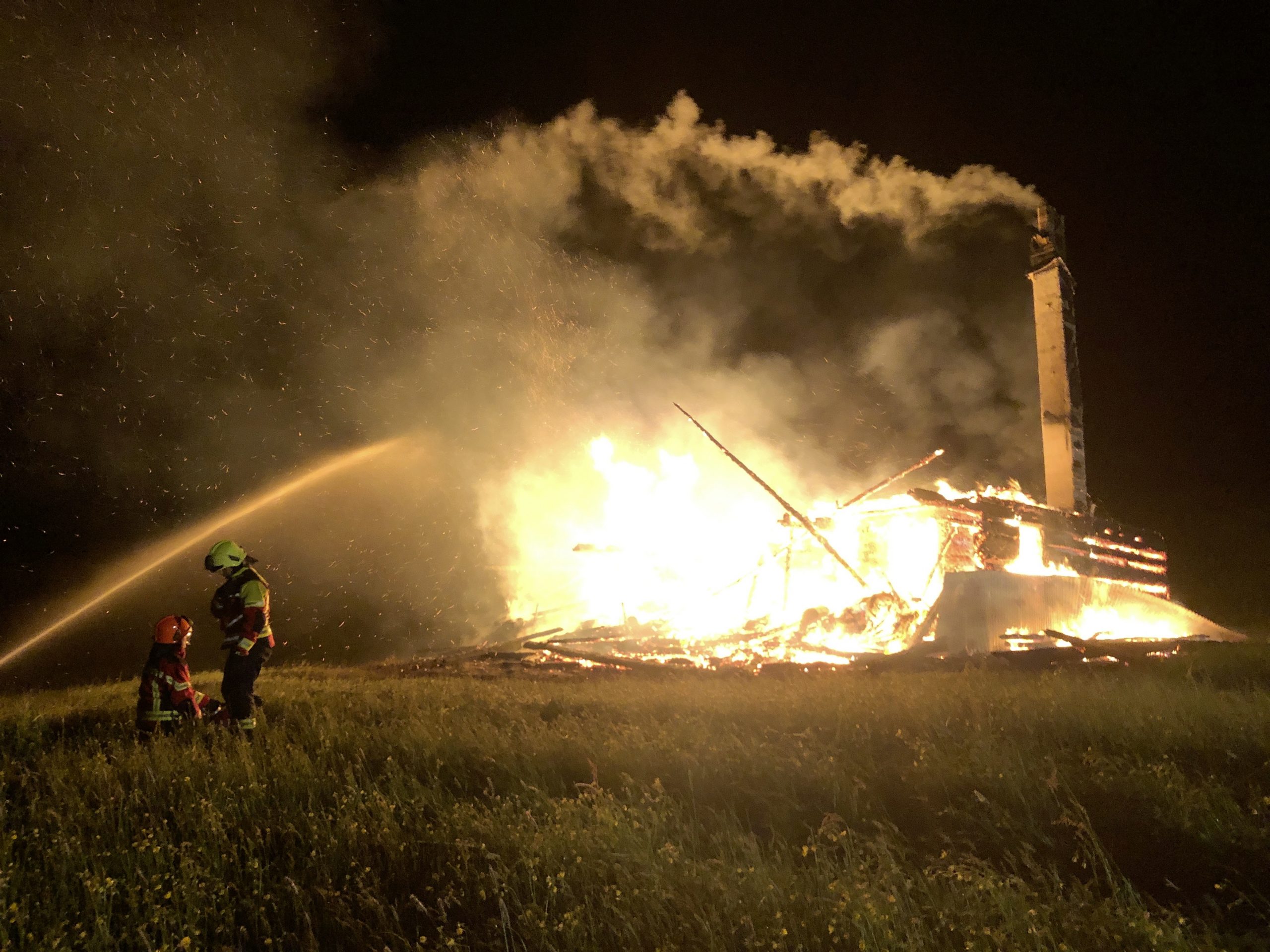 Beim Eintreffen der Rettungskräfte stand das Gebäude in Vollbrand. Die aufgebotene Feuerwehr brachte den Brand unter Kontrolle. Das Gebäude brannte bis auf die Grundmauern ab. Es entstand Sachschaden von rund 150'000 Franken.