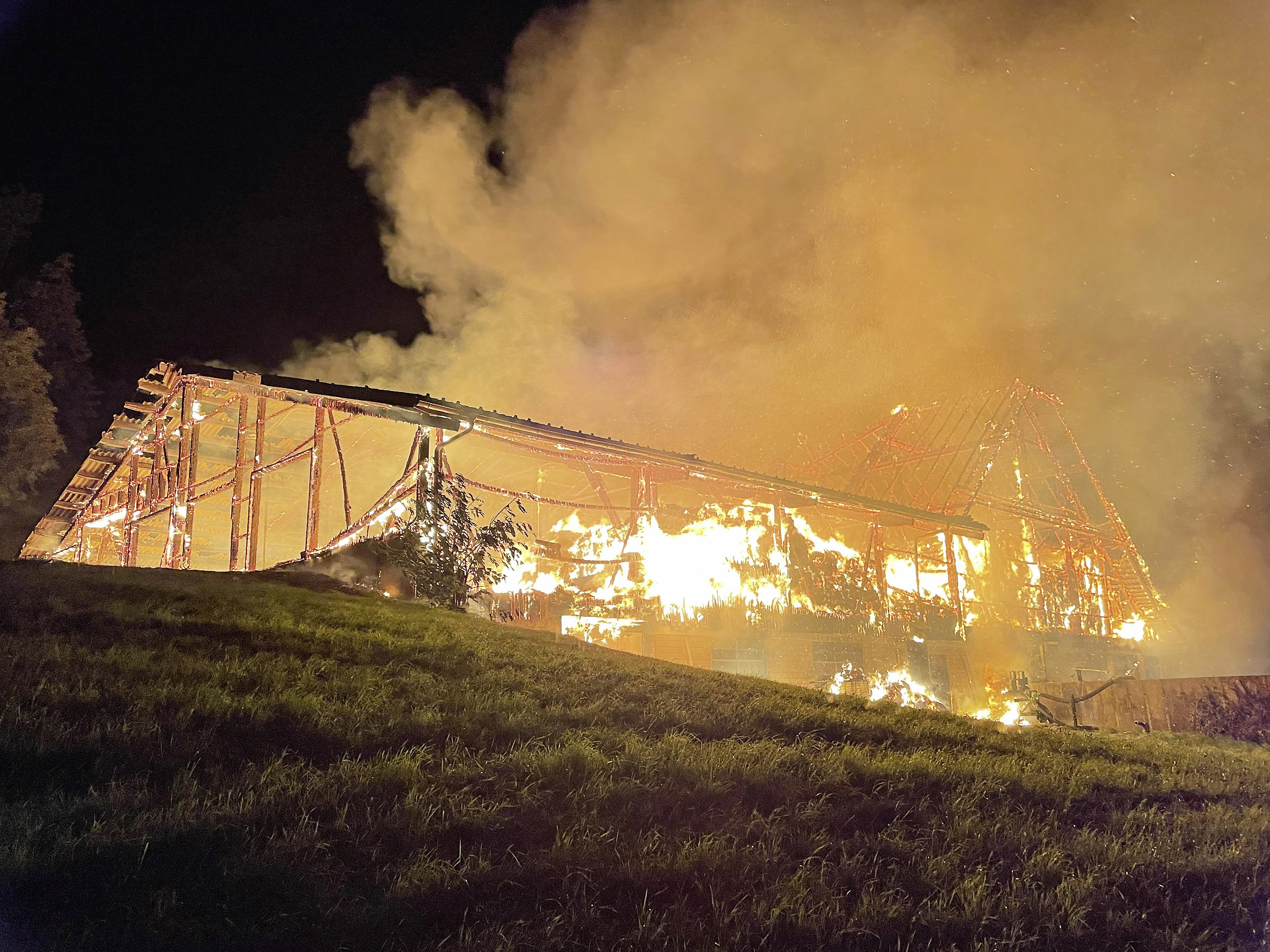 Die Scheune geriet am 13. Juli gegen 23.30 Uhr in Brand. Den Einsatzkräften gelang es, 75 Kälber und Kühe sowie einige Schweine vor den Flammen zu retten.