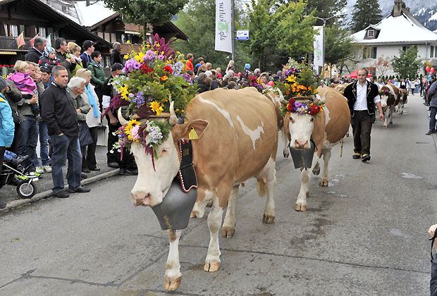 Aber die Besucher kamen vor allem auch wegen des farbenfrohen Alpabzuges ins Berner Oberland. Kühe und Rinder von sieben Bauernfamilien liefen geputzt und geschmückt durchs Dorf. Doch zur Überraschung von Gästen und Bauern präsentierte sich das Berner Oberland in einer weissen Pracht. „Morgens um vier räumten wir zehn Zentimeter Schnee vom Festzelt“, erklärte Hölde Trachsel vom Organisations-Komitee gegenüber der Zeitung „Berner Oberländer“. Doch im Verlauf des Morgens lugte schon bald einmal die Sonne hervor und liess das Oberland erstmals in einem Winterkleid erscheinen.