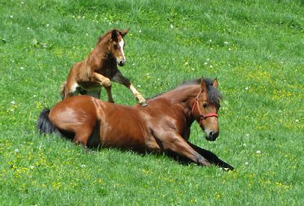 Während die Abfohlsaison auf manchen Betrieben noch in vollem Gange ist, können die früh geborenen Fohlen bei schönem und trockenem Wetter bereits die Weide erkunden.