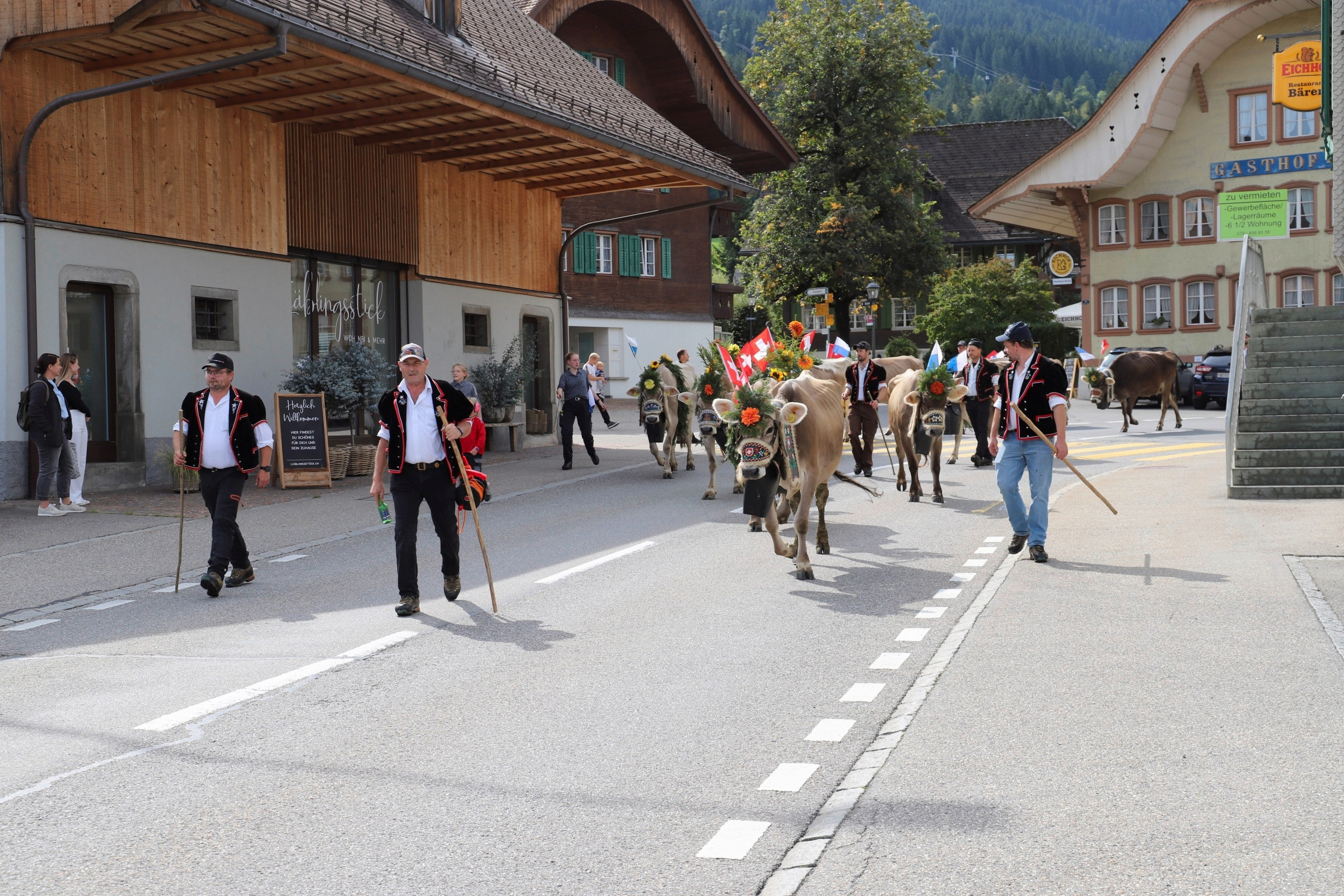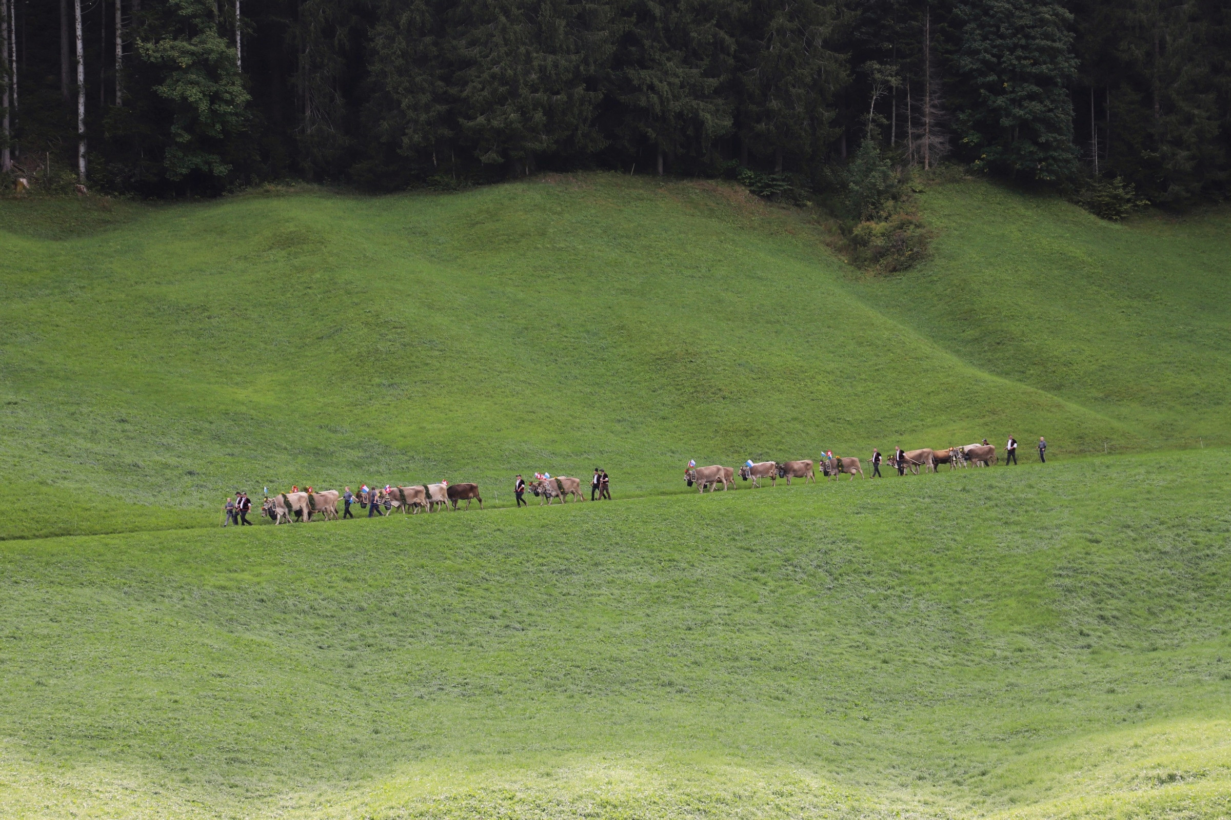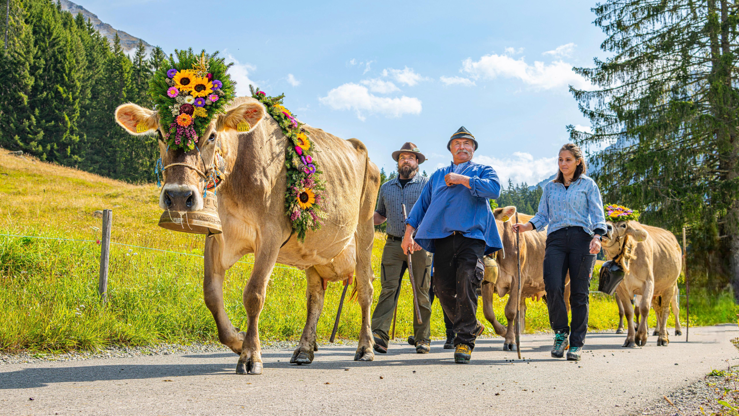 Die Alpabfahrt ist ein traditionelles Ereignis in vielen Alpenregionen, bei dem Kühe, Ziegen oder Schafe nach dem Sommer auf den Bergweiden ins Tal zurückkehren. Die Tiere werden festlich geschmückt mit Blumen, Kränzen und Glocken, während die Bauern in Tracht begleiten. Für unseren Wettbewerb «Bild der Woche» haben wir Fotos zum Thema «Alpabfahrt» gesucht.