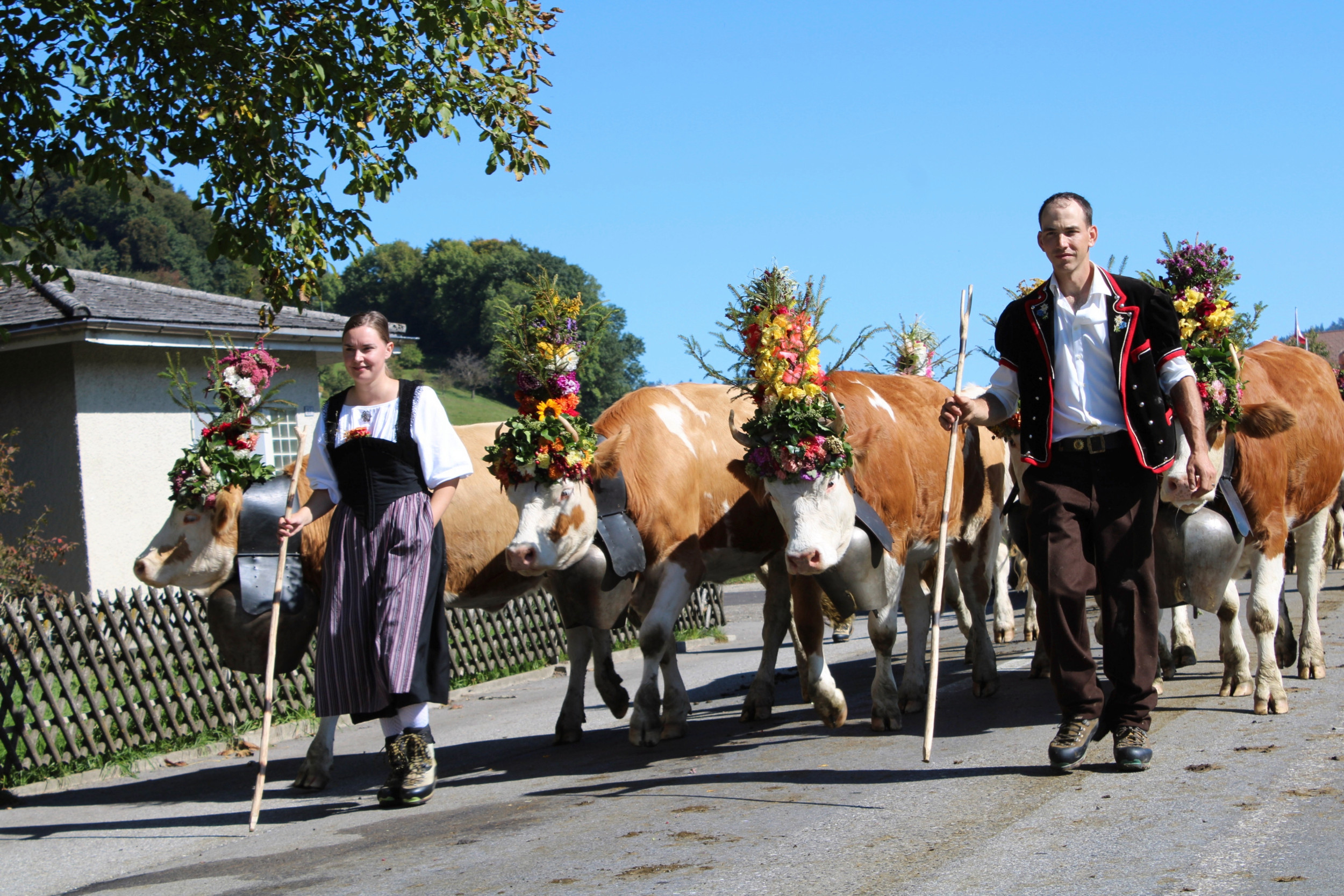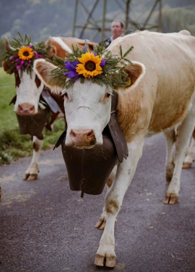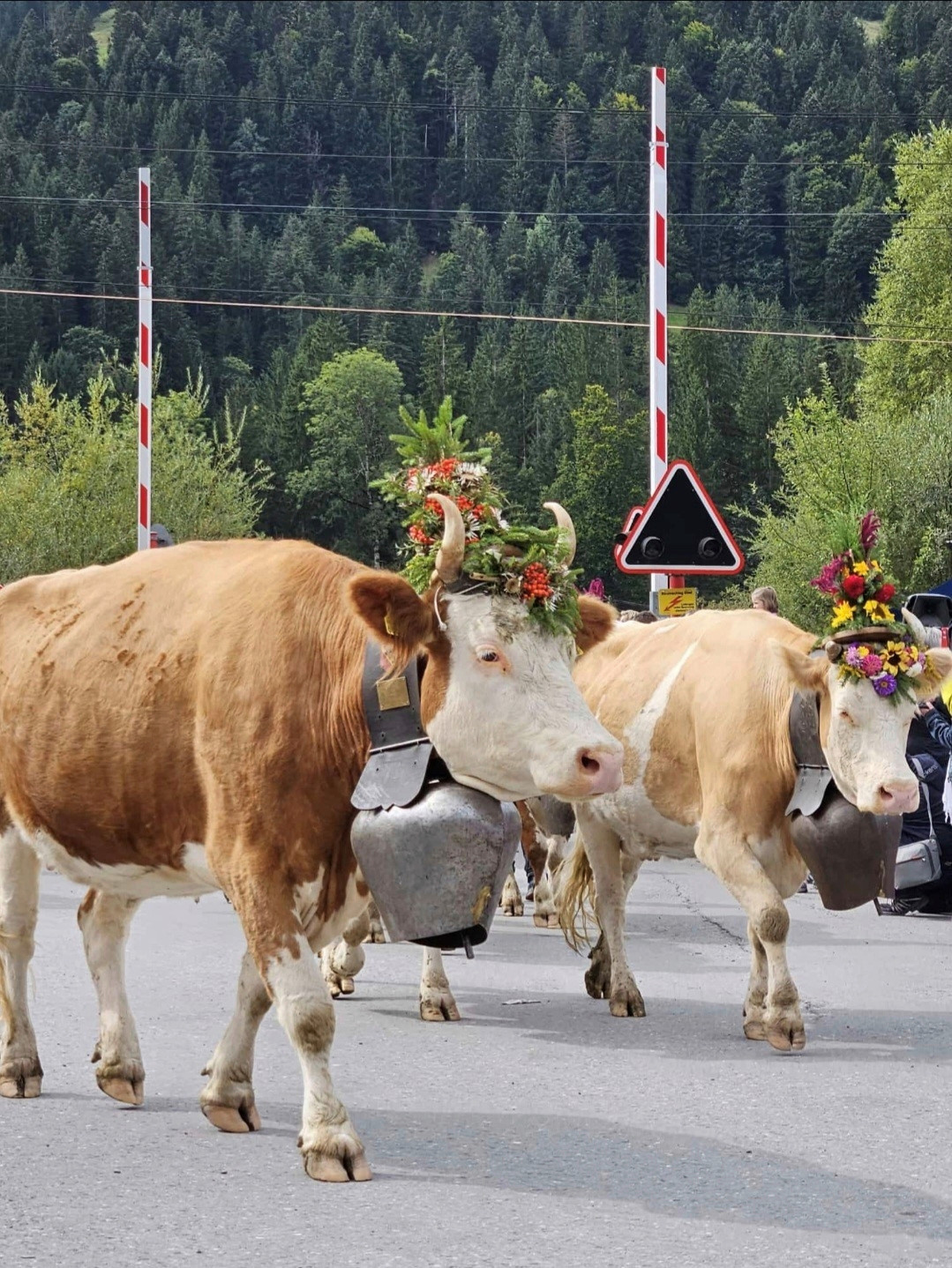 Die Alpabfahrt ist ein traditionelles Ereignis in vielen Alpenregionen, bei dem Kühe, Ziegen oder Schafe nach dem Sommer auf den Bergweiden ins Tal zurückkehren. Die Tiere werden festlich geschmückt mit Blumen, Kränzen und Glocken, während die Bauern in Tracht begleiten.