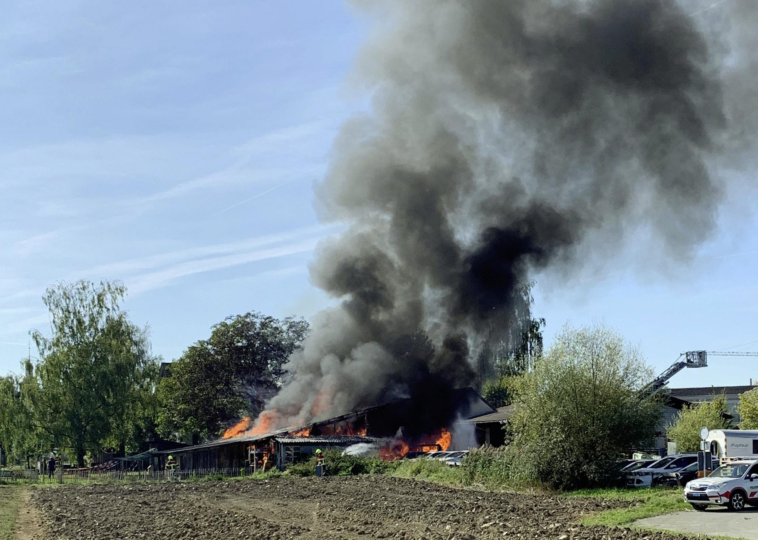 In der Nähe des brennenden Gebäudes waren mehrere Fahrzeuge parkiert. Davon gerieten ein Lieferwagen und zwei Personenwagen ebenfalls in Brand. Die Feuerwehr konnte ein Übergriff des Feuers auf weitere Gebäude verhindern.