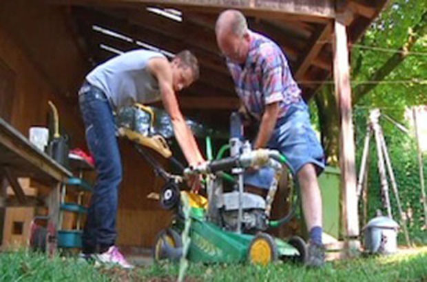 Der 15-jährige Lucas Truniger hat ein Vergasersystem entwickelt, das mit 50 Prozent Wasser und 50 Prozent Benzin läuft. Zum Einsatz gelangt das System auf einem Rasenmäher.