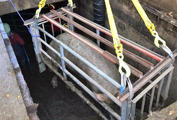 Die lokale Feuerwehr mit Unterstützung der Berufsfeuerwehr Bern konnten die Tiere mit einen Metallkäfig aus der Grube bergen. Zuerst mussten sie in der Grube aber zusammengetrieben werden. «Dass 27 Tiere auf einmal gerettet werden müssen, ist schon speziell», sagte Stephan Lüthi, Mediensprecher der Berufsfeuerwehr Bern. Mit Atemschutzgeräten und speziellen Gerät für die Grosstierrettung stiegen die Einsatzkräfte in die Grube.