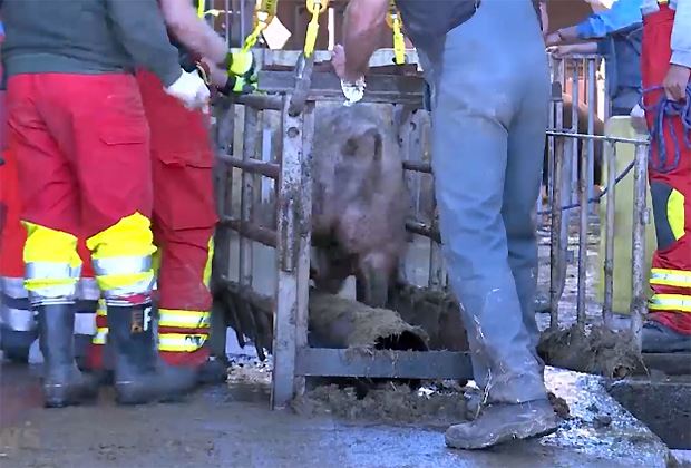 Der Vorfall ereignete sich auf einem Bauernhof in Wengi bei Büren, wie die Zeitung „Der Bund“ und der TV-Sender „TeleBärn“ berichten. Weil ein Spaltenboden-Element zu Bruch ging, fielen die Mutterschweine rund 3 Meter in die Tiefe.