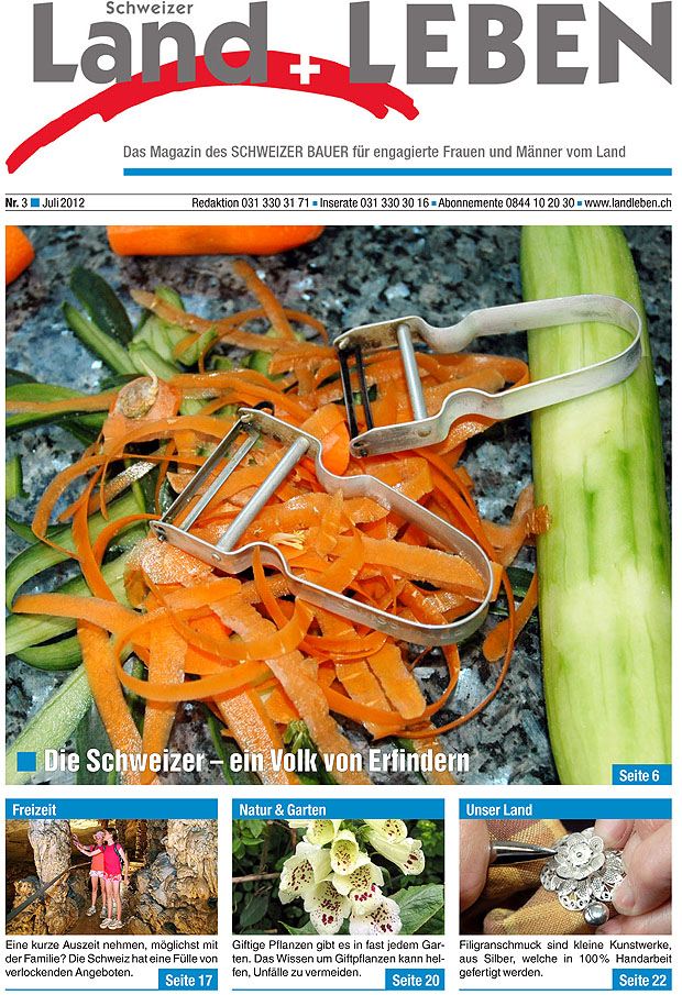 In der Juli-Ausgabe 2012 des Schweizer Land und Leben lesen Sie über Schweizer Erfindungen, die um die Welt gegangen sind, über das Zeitmanagement, über das Sakrament der Taufe und viele weitere, interessante Themen.