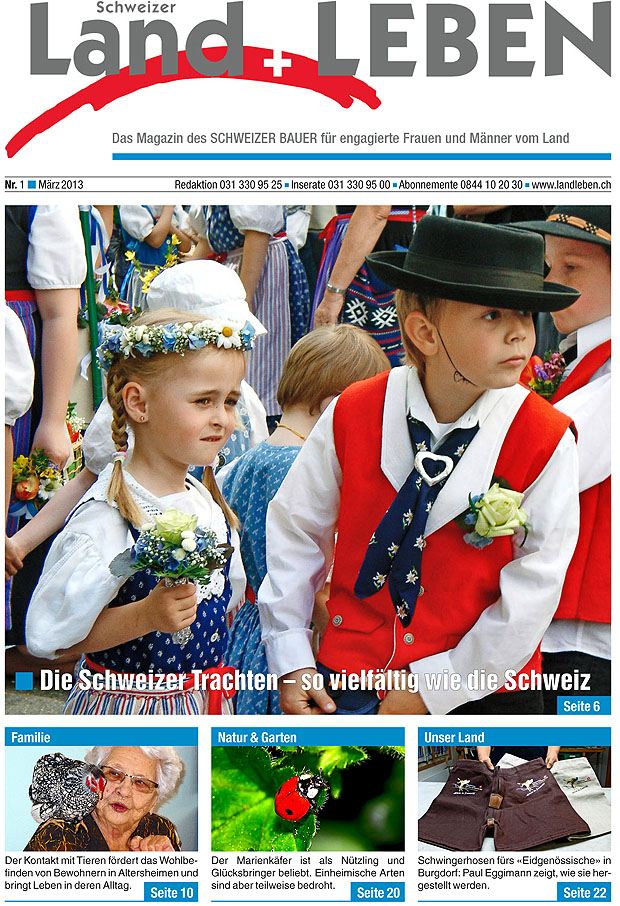 In der März-Ausgabe 2013 des Schweizer Land und Leben lesen Sie über die Schweizer Trachten, den Afrika-Arzt Albert Schweitzer, über kirchliche Jugendarbeit und viele weitere, interessante Themen.