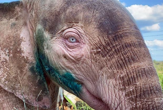 Ein seltenes Albino-Elefantenjunges mit blauen Augen haben Tierschützer vor einem qualvollen Tod in einer Wildererschlinge bewahrt. Das etwa fünfmonatige Mädchen wurde schwer verletzt ins Hoedspruit Elephant Rehabilitation and Development (Herd) in Südafrika gebracht. -> Mit Video