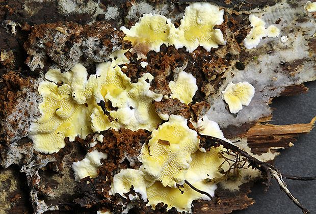 Die Zitronengelbe Tramete braucht gemäss Blaser, der für das nationale Daten- und Informationszentrum der Schweizer Pilze SwissFungi verantwortlich ist, in erster Linie zerfallenes, dickes Totholz. Und sie wächst nur da, wo auch der viel häufiger vorkommende Rotrandige Baumporling das Holz zersetzt.