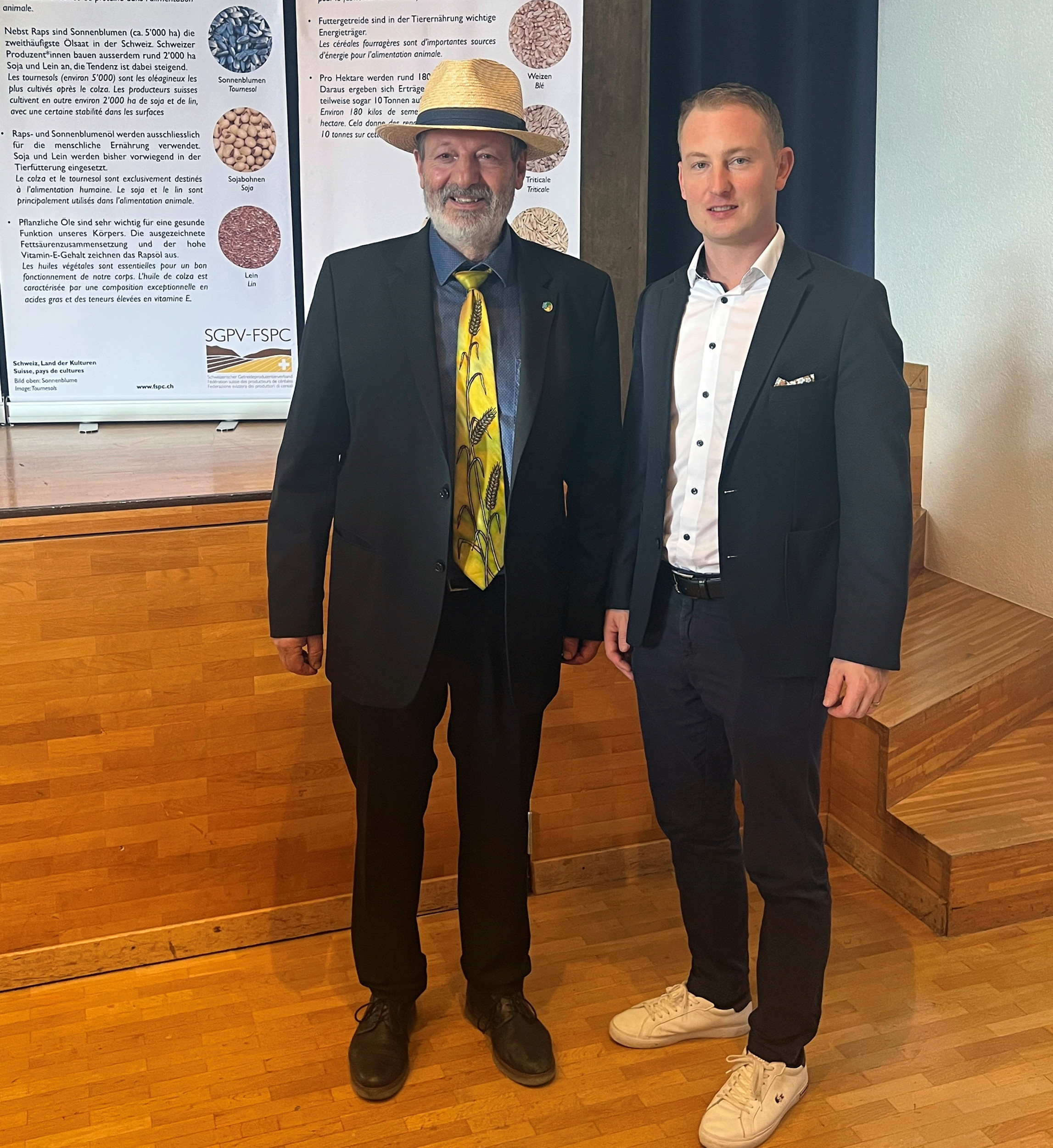 Fritz Glauser (l.) übergibt das Präsidium der Schzweizerischen Getreideproduzenten an David von Wattenwyl.