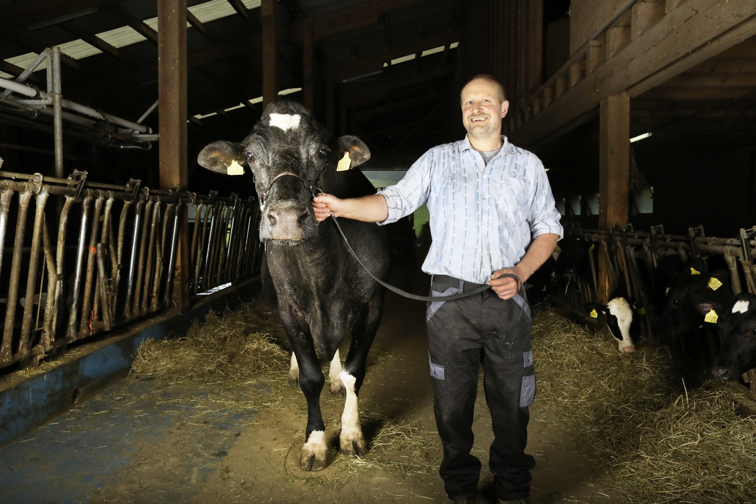 Als Odermatt dann in Bulle FR, wo der Herdenverkauf stattfand, ankam, fiel ihm spontan ein Kuhkalb auf, das ihm mit einem schönen schwarzen Fell imponierte. «Im Katalog sah ich dann, dass es Orina war. Schliesslich bot ich darauf und konnte es kaufen.» Und der Kauf lohnte sich. Heute ist Orina mit EX-95 4E eingestuft und hat sechs Laktationen abgeschlossen. Insgesamt leistete sie 89’416 kg Milch mit 3,57 Prozent Fett und 3,16 Prozent Eiweiss.