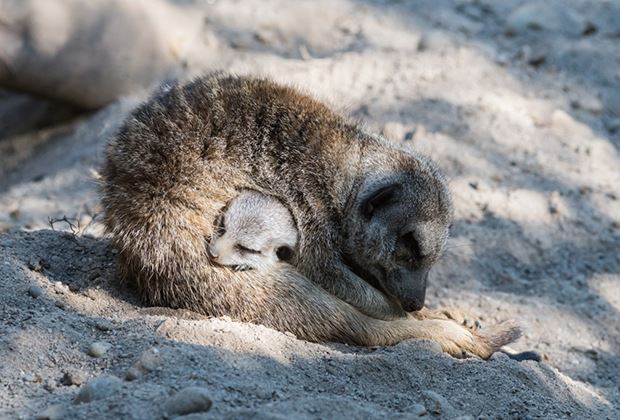 Insbesondere heissere und trockenere Sommer könnten den Fortbestand der Erdmännchen gefährden: Unter diesen Bedingungen werden weniger Nachkommen geboren. Das bedeutet zugleich auch schlechtere Überlebenschancen für nachfolgende Würfe, auch wenn der nächste Sommer weniger extrem wird: Bei diesen sozialen Tieren sorgt nämlich ein dominantes Weibchen für den Grossteil an Nachwuchs, hierarchisch untergeordnete Weibchen helfen bei der Aufzucht. Weniger Nachkommen in einem Jahr bedeuten also auch weniger Helferinnen für die Aufzucht im nächsten.